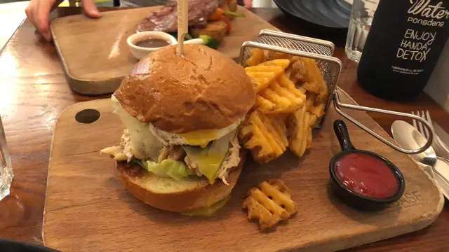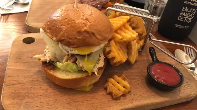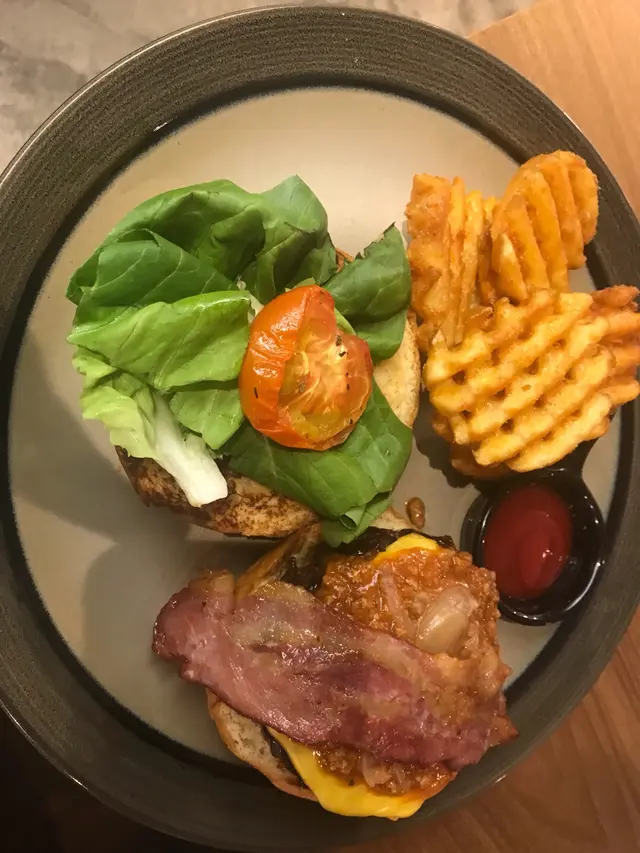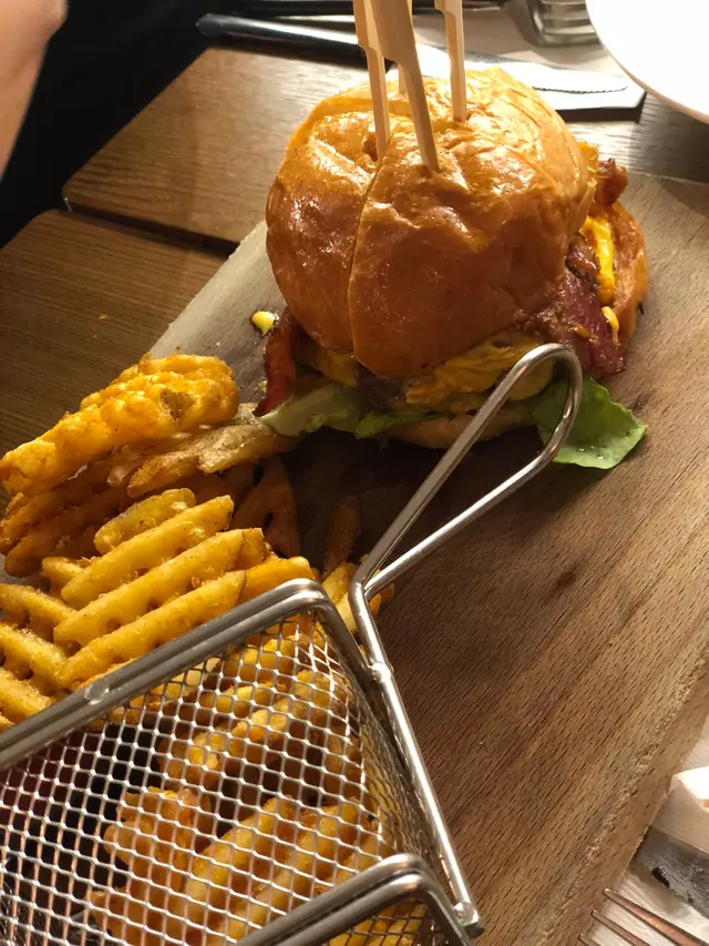 雙層芝士大啡菇漢堡配薯格