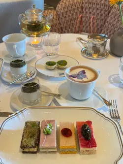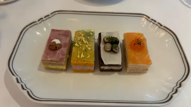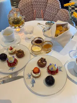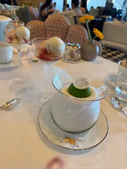 以前都嚟過呢度食下午茶,記得主打朱古力,我朋友非常鍾意😄今次朋友再次推介,呢度2023年換咗新 Chef Jonathan Soukdeo 主理下午茶,最近更獲頒 La Liste 2025年 World’s Best Afternoon Tea Award,因此慕名而來試吓😍 碰巧這周末是聯乘 Finesse Patisserie 的 Mandy Siu,強強聯手,結果比想像中更好👍🏻👍🏻 下午茶$568pp,加咗一位Tea paring😄經理話臨近中秋,所以餐牌都加入咗相關元素,睇吓面介紹啦🥰SPARKLING TEA PAIRING (+$228)3-glass of Sparkling TeaJasmine I Hojicha I DarjeelingDarjeeling 大吉嶺茶,好香茶味👍🏻Jasmine 有淡淡茉莉花味道😋Hojicha 最後嗰杯茶有啲燶味,果然係焙茶😅Amuse Bouche左:Cauliflower Panna Cotta, Caviar上面係魚子醬,下面係椰菜花奶凍,味道大鹹香😋右下 Lobster Roll, Green Apple, Trout Roe右上 Datterino Tomato Tartlet 蕃茄撻加咗黑醋,真係好開胃😋Finger Sandwiches右:Salmon 煙三文魚,面頭用咗紅菜頭汁醃製所以顏色較深紅中間:Butcher Ham 芝士火腿三文治加入黑松露,黑松露味唔係好強烈😅好食左:Egg 上面鋪滿飛魚子,麵包就係朱古力包,加入可可粉,不過味道唔係好出😅Pre-DessertGranny Smith, Yuzu, Osmanthus呢個甜品就係 Chef Mandy 特別主理,主要係青蘋果,上面係柚子雪葩,加入白蘭地,好欣賞😋😋😋Pre-DessertGrapefruit, Mango Sago, Coconut (Jonathan)同樣係Chef Jonathan 特別主理,另一個驚喜,芒果杯配合椰子雪糕,不同層次有不同驚喜😋😋😋Plated DessertLotus - Longan (Mandy)Sweet Fermented Rice, White Lotus FoamLocal Longan Honey Ice Cream上面係一片脆脆,中間有雪糕及蓮蓉。正正配合返個主題臨近中秋😅旁邊嗰啲好似溶咗嘅雪糕,其實係米酒釀米漿。Black Sesame (Jonathan)Sesame Jian Dui, Red Bean Rice Black Sesame Ice Cream好豐富嘅芝麻雪糕及脆脆片,右邊嗰粒係奶黃鹹蛋炸湯圓😋中和全部係甜味👍🏻Freshly BakedSconePineapple Bun個人好鍾意食scone同埋菠蘿包,一次滿足兩個願望😂不過食咗以上咁多嘢真係已經好飽😂送嘅小甜點右:綠茶芝麻蛋糕仔左:果仁曲奇餅🍪Tea: 左:Sweet Shanghai 呢隻茶好特別,飲嘅時候只有茶味,之後係甜味😅右:Earl Grey Imperial最後當然係期待已久嘅朱古力車😍…查看更多