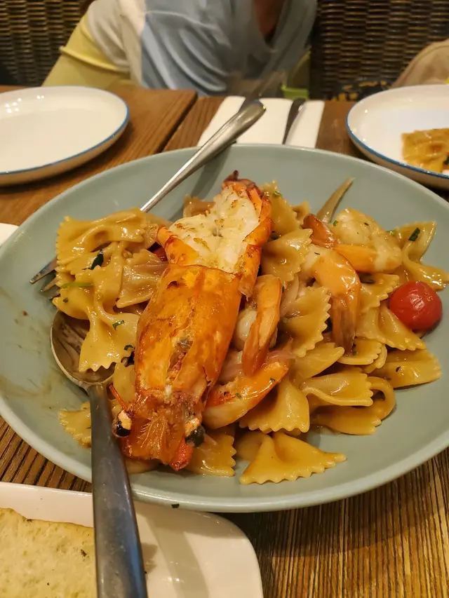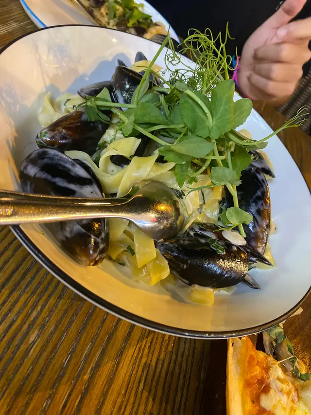 一班朋友,大人細路去轉西頁玩完水之後剛好呢度可以坐得多人 可以12人坐所以就去左呢度DINNER呢度係青口 1KG, 我地TOTAL叫左2KG 兩大盤小朋友食得好開心,大人又LIKE沙律 菜 做頭盤少少辣的GRILLED OCTOPUS呢度D手工意粉,可以自己揀TOPPINGS,自己再揀PASTA黑松露意粉TigerPrawn小朋友們最愛的PIZZA,前後都叫左3個ENCORE又ENCORE。佢地最鐘意呢個三文魚佢地個PIZZA係薄身皮的,脆口 新鮮熱辣拎上枱 就一定正嘅~Overall 飲食體驗VeryGOODStaff又親切友善 食物又好食又坐得舒服 人頭都係 200左右 NICE NICE…查看更多