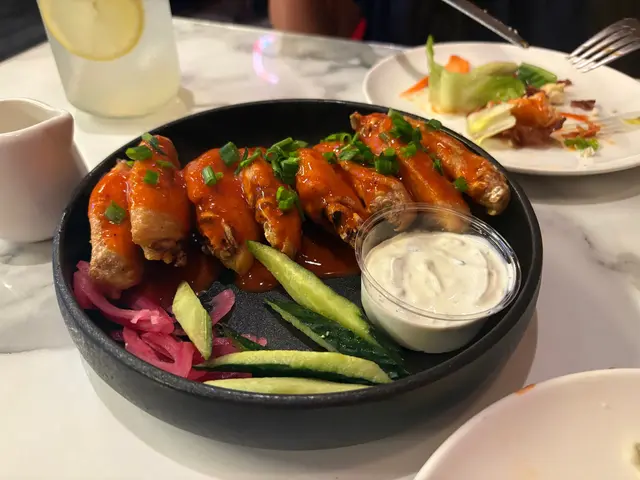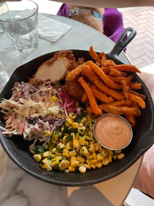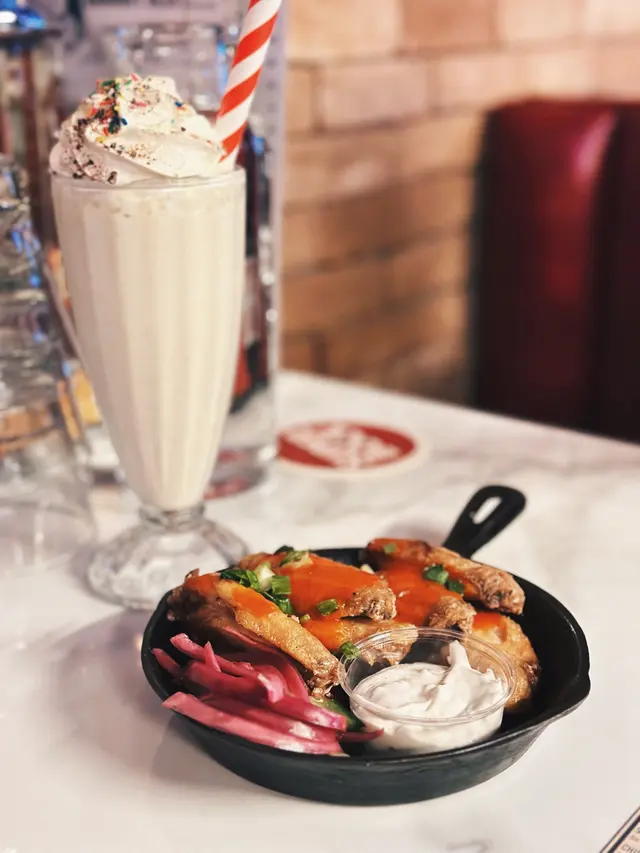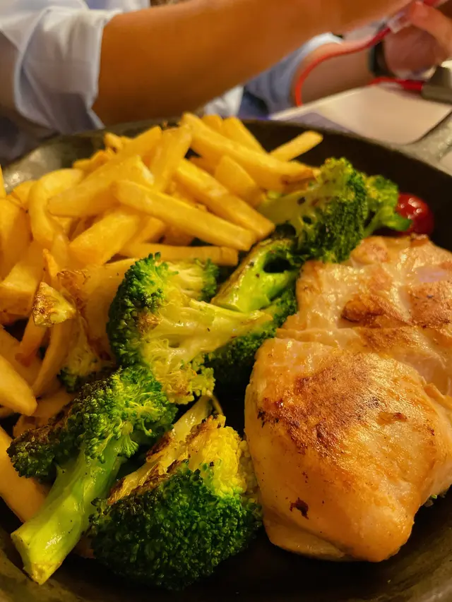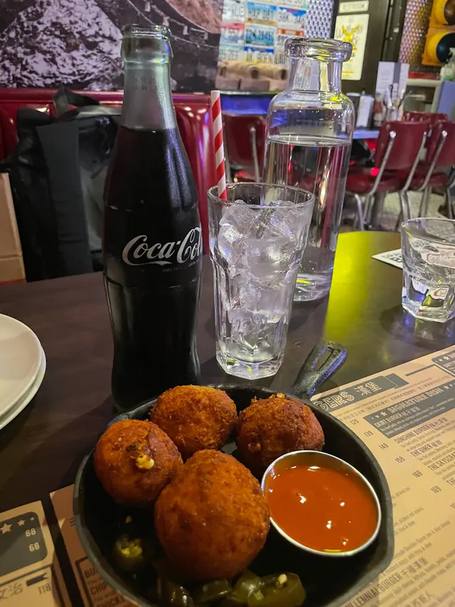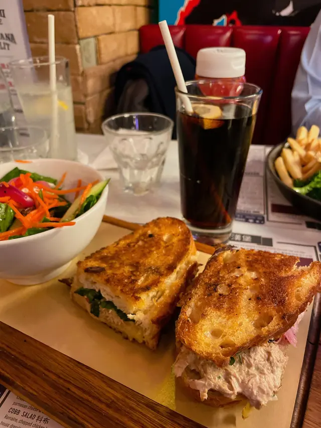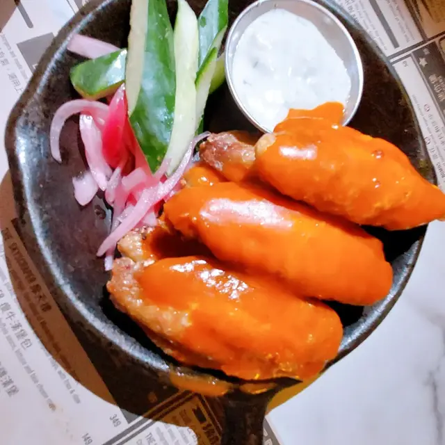 星期日走去食晏,其實已經3:15pm, 原本諗住去Smoke and Barrel, 但係價錢比較貴,之前又食過 於是喺附近搵食,見到另一間都係美式餐廳一坐低,d侍應好友善,話我知可以嗌早市餐牌入面嘅菜式但係太肚餓,又唔想太滯,嗌咗水牛城雞肉沙律,材料都好新鮮,略嫌雞肉唔夠熱後來有朋友落嚟一齊食,再嗌咗一份水牛城雞翼,雞翼就生炸,再淋啲汁係上面,呢份好食好多佢哋餐牌有兩種Lemonade- fresh 同普通,佢哋話食品工場拎過嚟,但係好fresh 🤣,如果需要佢哋都可以新鮮切個檸檬榨返杯俾我飲,結果嗌咗杯fresh lemonade ($45)*食食下出面落大雨,唔知係咪因為室內突然間落雨咁漏水,啲侍應即刻攞個盤裝著,過咗10mins 又停咗
