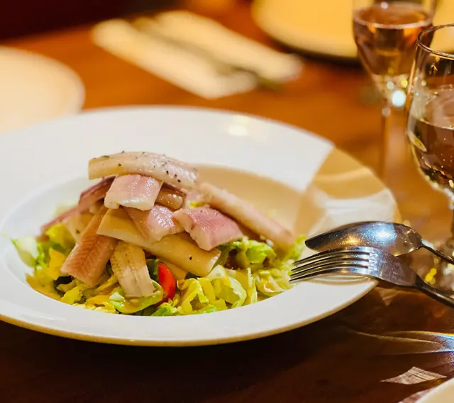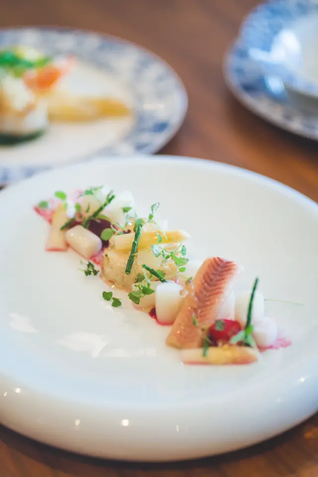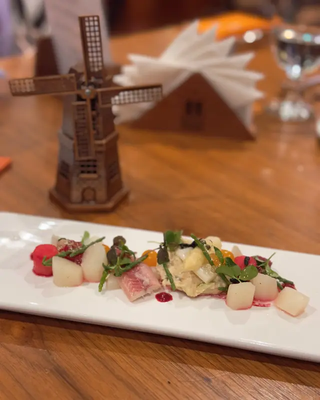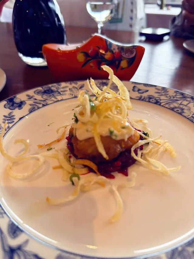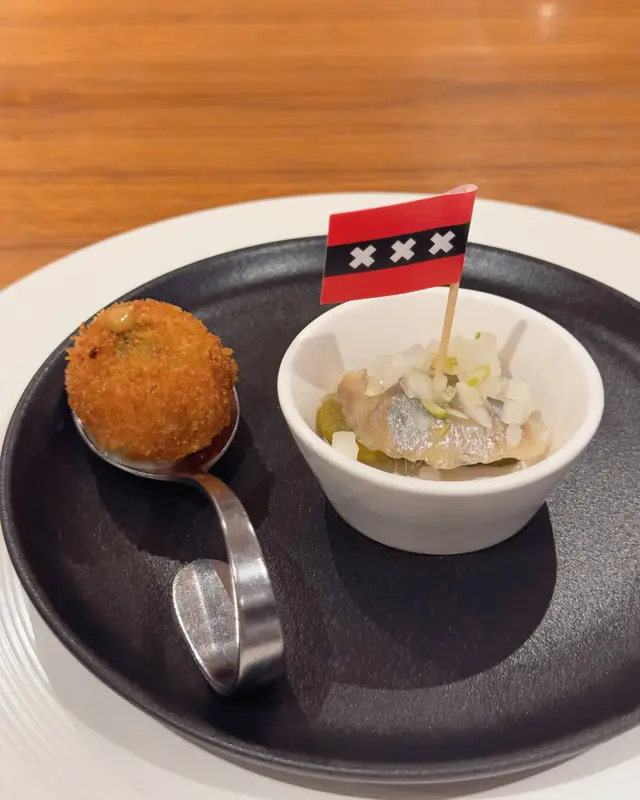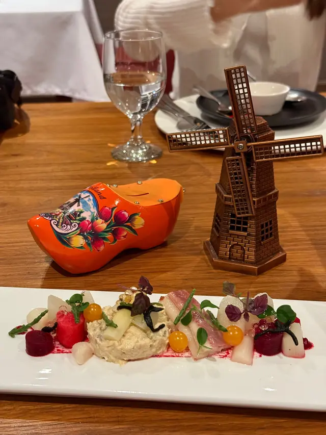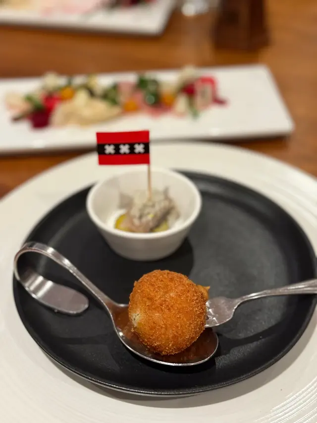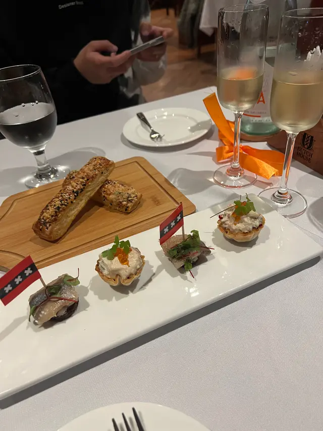 In HK we can find delicacies from all over the world, but somehow Dutch cuisine is virtually unheard of. So, when I saw the promotion of The Dutch House on social media, I immediately made a reservation to explore.The restaurant is on 13/F of VIP Commercial Centre in TST, and we are seated at a table on the window side, having a nice view overlooking Kowloon Park. Neat décor, with some post-impression style paintings on the walls, to pay tribute to the famous Dutch artist Van Gogh.I have pre-ordered the seasonal Holland White Asparagus Tasting Menu ($888 each) with also wine pairing. A smart approach is that they charge per pairing ($80 each), so allowing the diner to choose which and how many glasses they like.There are two starters. On the left is the Dutch Herring tartlet, with the chopped herring nicely marinated and flavourful. On the right is Asparagus Bitterbal, replacing the oxtail meat in the traditional snack with asparagus and Italian ham. Both are delicious.The first pairing is in fact not wine, but a gin called Hazey Gin. Developed together with celebrity chef Chris Cosentino, the spirit has many fragrant herbs, pleasant on the nose and palate, but its strong alcohol level may not work for everyone.The first course is Smoked Mackerel White Asparagus Apple Salad with Eel. The mackerel and green apple and finely chopped and mixed like tartar, with white wine vinegar pearls and asparagus on top. The gorgeous smoked eel is from a wild river species only available in Holland. Together with beetroot and asparagus pickled in beetroot juice to give a beautiful red colour, this salad is phenomenal in taste. My favourite dish in the evening.The wine paired is Pere Ventura Tresor Gran Reserva 2018, a Cava from Penedes in Spain. The sparkling wine from the traditional blend of Macabeo, Xarel-lo, and Parellada, with nice persistent bubbles, crisp green apple and citrus zest, and toasty.The second course is White Asparagus Soup with Dutch Shrimps. The shrimps are small but intense in taste, with also good bite. Added with some chopped poached eggs, the soup is of perfect thickness, delicate with the refined flavours of the white asparagus and not overly seasoned. Another wonderful dish.The third course is White Asparagus Hollandaise with Monkfish and Lobster. Adopting the traditional style to enjoy white asparagus with poached egg and Hollandaise sauce, the chef has also added monkfish and lobster on the side, which are very good on its own, to complement the true anchor of the dish, the prized ‘white gold’.The wine paired is Domaine La Grange Tiphaine Bel Air 2022, a Chenin Blanc from Touraine in Loire Valley of France. A fruity wine with good minerality and richness, it is a versatile wine that can match both the hollandaise sauce and rich flavour seafood.The fourth course is Slow Cooked Pigeon with Crispy Fried White Asparagus in Truffle Sauce. Beautifully presented, the pigeon is very tender and juicy, with the deep-fried asparagus on the side, together with some okra and onion, and finished with the truffle sauce to enhance the earthy tone and savoury. Another of my favourite dishes.The wine paired is Maddi Rioja Reserva 2019. The intense aromas of this Spanish red show a lot of spices and balsamic characters, with also cocoa, earth, and oak. Good to match with the pigeon and truffle sauce.The fifth course is Rangers Valley Australian M9+ Wagyu Tenderloin with Grilled Asparagus. The beef is soft and tender, with a nice gravy sauce on top. The grilled asparagus is very nice, along with some bell pepper and cauliflower. Another nice dish. I think if the beef is from a cut with a slightly chewier texture, it might be even better.The wine paired is Chateau Fondouce Cuvee Juliette 2013, with the owner of this Languedoc estate being a good friend of the chef. It has nice, forward Grenache characters, but is in fact a blend, with delicate light oak and sweet spice on top of the ripe black fruit.The sixth and final course is Dutch Strawberries Butter Cake with Custard. The strawberry gelato is delicious, not too sweet, with some fresh strawberries and puree added, plus a bit of crumbs on top to give extra texture. On the side is a homemade butter cake, which is also nice. A pleasant finish to a satisfying meal.The wine paired is Markus Molitor Wehlener Klosterberg Riesling Kabinett 2020. The Mosel wine does not have the necessary sweetness and honestly does not match with the dessert. I guess there may be a mistake on the choice here.Service is good, and the bill on the night is $2,651. The food, ambience, and overall experience is nice, and while I am not sure how authentic its Dutch cuisine, it is certainly delicious. But seeing how slow business is, I feel sad and hope they will get more customers, as it is with diversity and quality that made HK an international food heaven, and we need restaurant like this one to uphold our pride heritage.…查看更多