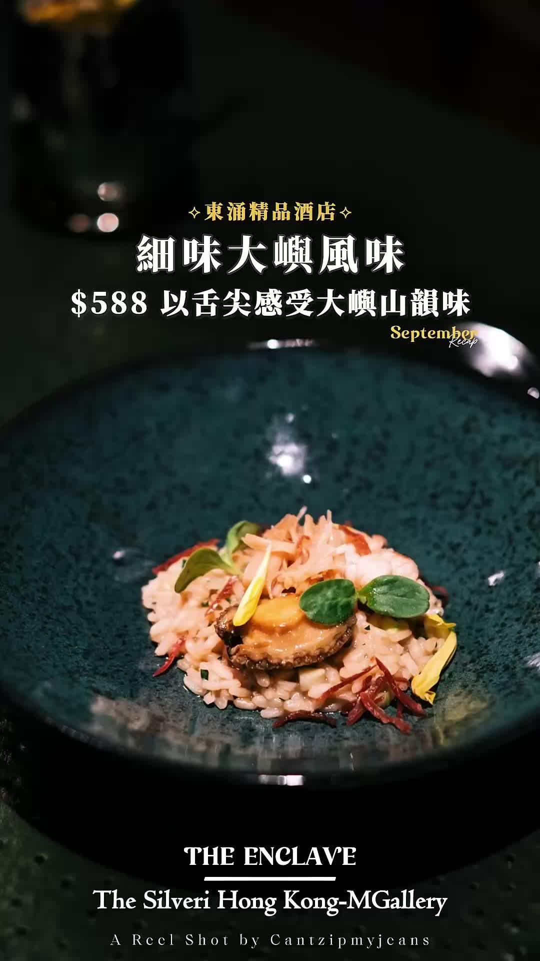 最近去咗位於東薈城二期內嘅𝙏𝙝𝙚 𝙀𝙣𝙘𝙡𝙖𝙫𝙚品嘗匯聚港西文化嘅Fusion菜🥰全新五道菜menu創新又有特色😍帶你用舌尖感受大嶼山嘅獨特風情👅✨ 尋味大嶼:美食探索之旅 ($588/位)♡ Amuse Bouche❀ 烤魷魚乾 🦑 | 炸白飯魚 🐟魷魚乾帶微微煙燻風味 鹹甜煙韌白飯魚烤至金黃酥脆配上西班牙腸醬香辣惹味☺️♡ First Course❀ 港式西班牙凍湯 🦐凍湯呈泡沫狀 酸辣開胃加入鮮嫩彈牙嘅阿根廷紅蝦、北海道帶子再以話梅醬及黑糖薑調味蕃茄酸甜多汁 芝士脆片增加口感層次感好豐富呢👅♡ Second Course❀ 「大嶼」風味義大利燉飯 🥘港版海鮮Risotto✨燉飯入口充滿濃郁海鮮味以鮑魚、龍蝦、瑤柱及金華火腿製作鮮味十足👍🏻♡ Sorbet❀ 清新鮮果雪葩 🍈當日係蜜瓜味口味味道清甜好refreshing清下味蕾再品嘗主菜😚♡ Main Course❀ 石斑魚兩吃 🐟分別以煎炸兩種方式製作石斑煎石班皮脆肉嫩炸石班外層酥脆 魚肉鮮嫩多汁搭配花膠扒、蝦乾及百香果柚子汁酸酸甜甜好開胃😍❀ 大嶼海陸風味 🐮澳洲M4和牛同樣以兩款唔同烹調方式呈現慢煮燉和牛軟腍入味 牛香濃厚另一款煎至medium rare 肉質軟嫩且帶焦香旁邊伴以彈牙嘅海參及蝦醬紅酒汁味道濃香滋味🥰♡ Dessert❀ 東涌甜韻 🥧甜品係榛子慕絲撻 香甜鬆脆撻入面有滿滿嘅龍眼、香橙及果皮酸甜清新👅…查看更多
