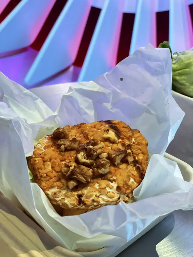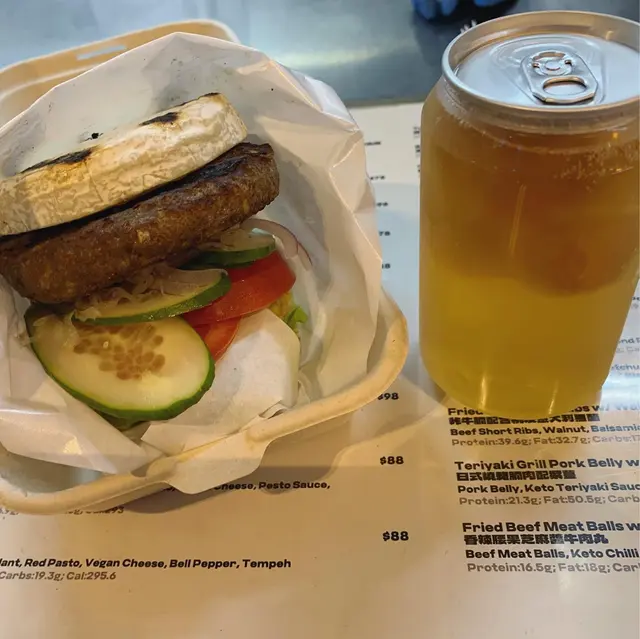 雖然我本人並不是生酮飲食的人,但是看見主打健康的餐餐廳,而且Menu還附上Macros真的令我不能卻步,要跑來這家以太空/Marvel為主題的餐廳🔺The Moon$118❅ 第一款主打以Camembert cheese代替麵包,第一個感覺可能會覺得超級漏 - 沒想到第一口咬下去的時候完全沒有覺得整個口都是油/肥膩的感覺牛肉patty雖然不是其他burger place那麼meaty,但是牛肉味道也濃Camembert cheese的半流心狀的口感很棒,而且味道跟牛肉很配,不會太鹹以致於搶了牛肉的味道,反而其creaminess更好襯托出牛肉的口感雖然整體的口感會沒有那麼豐富,不過配搭來說非常新穎令人驚喜❕我建議大家用店家提供的手套,一定不會後悔的🔺Major Tom (Chicken Breast)$78+$16轉黑豆天貝包❅ 雞胸肉煎得很香又不會乾,肉質還是嫩滑多汁,味道上調味也不錯包體我選擇了黑豆天貝,吃起來多了一分黑豆獨有的味道,相信並不是很多人能接受;如果是天貝初階者建議以普通天貝開始天貝剪過之後帶微微的黃豆香,跟雞肉互相配合又不會完全搶掉味道畫龍點睛的酸薑非常重要,令天貝的「香」味沒有那麼突出,並以酸酸的味道降低整顆漢堡的heaviness如果照燒醬多一些些味道應該會更豐富🔺Fried Meatball+$32 as a set❅ 肉丸經常吃,不過炸牛肉球真的是第一次沒有想到這個煮法也很好吃喔,炸過之後外皮酥脆也多了一分油香裡面的肉汁滿滿,牛肉味濃也不會太過乾🔺Groot Fingers +$32 as a set❅ 原味天貝炸過之後超級好吃,豆香味沒有那麼重反而多了一分油香切成細條非常香脆不過感覺跟番茄醬不是最搭,建議可以選擇aioli會更香🥤Peach Oolong Soda🥤Lemonade低糖飲料用罐頭包裝非常可愛,兩款都是低糖配方所以味道比較淡十分有心思的連冰塊都是用調味的水製成,不用怕冰溶掉令味道減淡查看更多