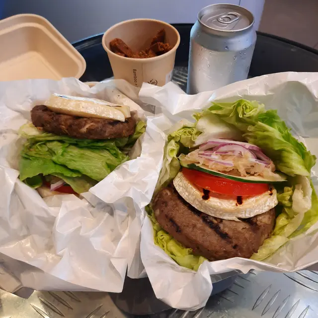健康之選生酮漢堡包🍔自從開始左低碳飲食之後,就幾乎冇食過漢堡包,因為坊間既漢堡實在太高碳🙅🏻‍♀️直到有日見到呢間係大角咀既餐廳有生酮漢堡賣!!終於見到曙光,可以去食漢堡啦~🧀The Moon金文畢芝士牛肉漢堡($128)🥬Green Planet生菜包牛肉法式芝士漢堡($98)將呢2個漢堡擺埋一齊介紹係因為原來佢地既材料係一模一樣🤦🏻‍♀️!!!同朋友分別點左呢2款,擺埋一齊已經覺得勁似樣,再睇返店家ig先發現呢個事實,2款一樣有蕃茄、青瓜、紫洋蔥、生菜、煙肉、酸菜、安格斯牛肉漢堡同金文畢芝士,但價錢就差左30蚊,唯有怪自己冇睇清楚😞Anyway講返個味道,漢堡肉頗厚,牛肉味都濃,配上大片金文畢芝士同其他配料一齊食,絕對有比得上食一般漢堡既滿足感同飽肚感。不過我同朋友都一致認為食曬生菜之後,芝士既鹹味會太搶同埋越食越漏,但味道係唔差既🖤黑豆天貝薯條($48)條條都炸得好酥脆,份量都幾大,每條都係似粗薯條既size,幾易入口同埋調味都惹味,係個味道唔錯又健康既小食💗🍑低糖蜜桃烏龍梳打($28)呢個飲品好得意咁係用個汽水罐裝住😆蜜桃味好香,茶味唔算濃但都夠出,仲要係低糖,所以味道清甜天然,仲夠曬冰凍,既解渴又解膩,好飲👍🏻查看更多