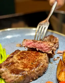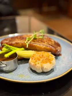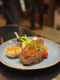 雖然自己並唔大食,但每次聽到任食牛扒薯片都會心郁郁。今晚終於可以挑戰。逢星期一至四都有任食牛扒同薯條供應。餐廳有齊室內同戶外位置,仲要寵物友善,活動包場仲有9折。澳洲特級安格斯牛扒8安士平時出去食一塊扒,可能都要呢個價,而家任你食到夠。而且牛扒唔會因為任食而比頹嘢你,如果揀五成熟,中間呈粉紅色,口感香嫩,有醬汁,出品並唔hea,第二round都冇變質。講真,食到兩round其實都賺番。薯條如果你本身鐘意食薯條,呢度係實現你嘅薯條自由,每次都係熱辣辣一桶比你,再配埋茄汁,記得問職員拎黑椒加埋仲好食。除咗又唔食牛扒薯條,可以加配沙律,湯同甜品。Caesar salad沙律都幾大碟,有煙肉乾,脆麵包,咬口豐富。Daily Soup追加餐湯只有一款,雜菜湯都比足料。Mount Fuji如果食牛扒想叫杯嘢飲,呢杯打咭夠晒吸引。富士山造型再加花既點綴,令人愛不釋手。Daily dessert朱古力慕絲蛋糕賣相吸引,濃香朱古力味。…查看更多