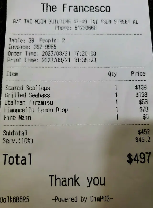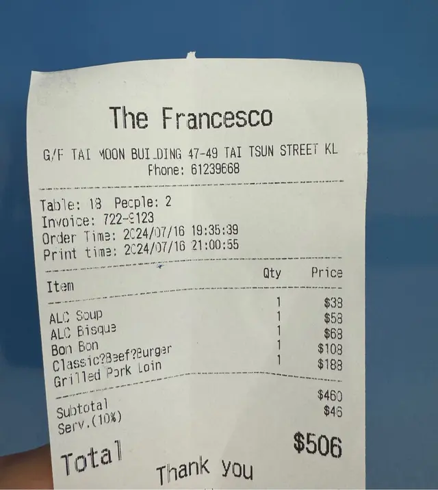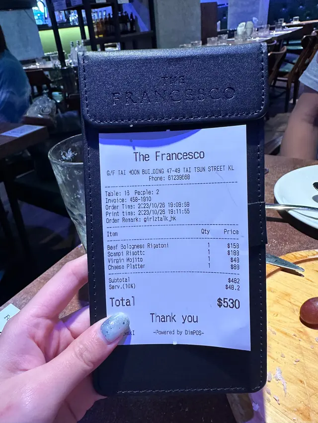 The Francesco (大角咀) 網址: https://s.openrice.com/QrbS0eAGB00 地址: 香港大角咀大全街47-49號大同新邨大滿樓地舖 電話: +852 61239668