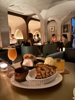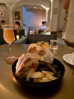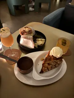 The green door價錢: $140(大約)/ $125/ $150/ $180好味程度: 4.3/5 (for food)服務🍴: 3.7/5環境🗾: 3.7/5性價比🥢: 3.7/5回頭率😚: 3.7/5-I go to bar for food🥳 呢間bar最signature的apple pie真係好好食!星期五晚等一陣位就有,8點前可以book位。個門口超隱秘,係d檔口入面,仲要落去的。佢哋的cocktail係以女仔的英文名起。-✅唔記得叫咩😶🌫️: 係一隻大潛艇的包,份量超大,食一半係好飽好飽!以類似法包的包體包住入面滿滿餡料。beef patty, cheese, 生菜, 🍅,酸瓜等,要撐大個口先可以一啖食得晒。個牛肉感覺似手打,口感有d鬆散,唔絲實,食到免治牛肉的質感。好濃郁的牛味+芝士的鹹香為主要味道,再以d蔬菜類減減膩,好食🤤成舊都唔係好乾。-✅✅American Pie。好大舊,兩個女仔share都有小小辛苦,但真係好好食❣️酥皮硬脆,好似厚厚的曲奇皮咁,就算雪糕融+醬汁都唔會淋晒。入面滿滿蘋果粒,切得大大粒,保留到🍎的爽脆!蘋果帶酸,加埋面頭大大球雲尼拿雪糕,同淋上熱辣辣拖肥醬,整體味道都唔算好甜,仲有肉桂的香氣同牛油皮的香!口感有d冰火🤩我自己平時麻麻蘋果批但呢個不得了!-🆗Elizabeth/ Jenny. Elizabeth雖然話有pineapple rum,但真係太重wasabi味,有d難搞😆 另一杯Jenny就完全係pickles的味道,聲稱有的tomato/ grape fruit都唔覺…兩杯都係d味道比較濃的(無論口味/酒味)-食完係有想回訪的衝動,當去食dinner咁🤣 不過cocktail就不了……查看更多