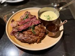 📍「The Grill Room」- 尖沙咀今次食食食之旅黎到尖沙咀😌聽講呢間嘅牛幾出名,就決定同👦🏻試吓個晚餐😎🍴炭燒美國16ozUSDA安格斯肉眼牛扒💰HK$488✨推薦指數:7.5/10Steak 係呢間餐廳嘅signature,又點可以錯過呢~今次嗌咗medium-rare ,外層烤過帶點炭香味,切開裡面呈鮮嫩粉紅色,賣相幾吸引😍😍😍食落牛味幾香濃,肉質唔鞋亦幾腍,脂肪部位比較多,所以食落比較膩,岩同朋友一齊share🤡今次揀咁牛肉原汁,唔會太鹹,點埋食會更juicy 😆伴碟揀咗法式薯蓉,口感好creamy,幾好!整體份量都幾大份,但偏肥膩,岩哂中意食啲脂肪比例比較重嘅牛魔王😈🍴燴蕃茄牛面肉扁意大利麵💰HK$168✨推薦指數:8.5/10呢款超有驚喜!牛面頰肉非常腍身,有入口即化開嘅感覺,而且好入味,呢款牛比上一款出色🤣醬汁充滿濃濃嘅酸翻蕃茄味,而意粉非常掛汁,口感煙韌,整體配搭得好好,必嗌😋…查看更多