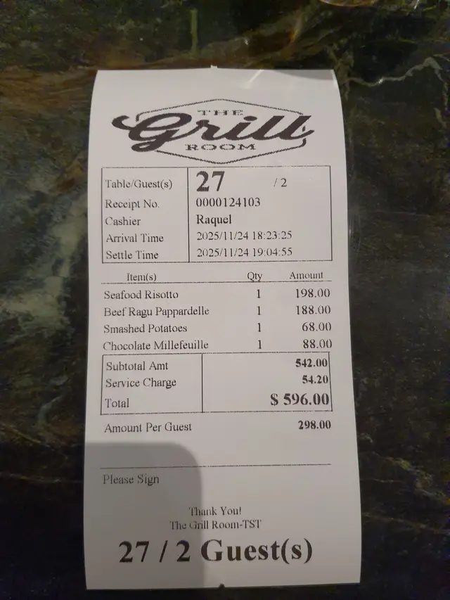 早排睇社交平台見有不少介紹尖沙咀有間扒房幾抵食,襯昨日雙十一,小妹帶媽媽齊齊去撐枱腳食好西😋!呢間咁熱門扒房名叫The Grill Room,餐廳環境高級,拍拖撐枱腳一流。連平日/閒日呢間尖沙咀樓上鋪都多人幫襯😍好受歡迎!晚市有供應單點及二人餐,收工後同同事上嚟飲返杯都得架😙整體份量對得起價錢,性價比高,認真估唔到喎,非常難得👏🏻👏🏻二人餐有分三道菜及四道菜,昨晚選擇了三道菜,包前菜/湯品、主菜&甜品,重點係每個選項都可揀兩個㗎🥳湯品 Soup💟香煎帶子配法式龍蝦湯Seared Scallop Lobster Bisque(濃而不稠,特別之處係龍蝦湯配大大粒帶子,有口感且好好食喎!)💟是日餐湯:蘑菇黑松露湯Seasonal Soup(相對呢款餐湯較為清淡,味道都濃郁,但多番啲菇粒就更加好飲)店員話比較細碗,但個鉢的深度一啲都唔細碗,份量比得上龍蝦湯❣️主食 Main💟是日精選M4+澳洲和牛(五成熟)Daily M4+ Wagyu Beef(和牛肉扒肉汁美味🤤配薯蓉西蘭花苗燒汁,有條筋令其少少遜色,但如果選擇七成熟便更加美味,墊底的薯蓉超級滑,簡直係滑過bb肌😋)💟海鮮意大利飯配蒜子墨魚汁Seafood Risotto(本身墨魚汁飯不嬲都係小妹最愛,呢個墨魚汁有蒜味仲要甜甜地,好特別,仲有蝦肉同八爪魚肉,超正🤩八爪魚肉係慢煮超嫩,蝦肉大大隻👍🏻👍🏻)甜品 Dessert 💟提拉米蘇 Tiramisu (份量都算多,不過味道係比較偏奶偏甜,喜歡酒精冇咁濃嘅會好鍾意😊)💟是日精選甜品:Cheese cake (係最傳統的紐約芝士蛋糕🍰,整完再焗超好食,好似媽咪以前整嘅芝士蛋糕,有種懷舊嘅味道!特別係蛋糕的邊邊位,It’s very delicious and yummy🤤 )…查看更多