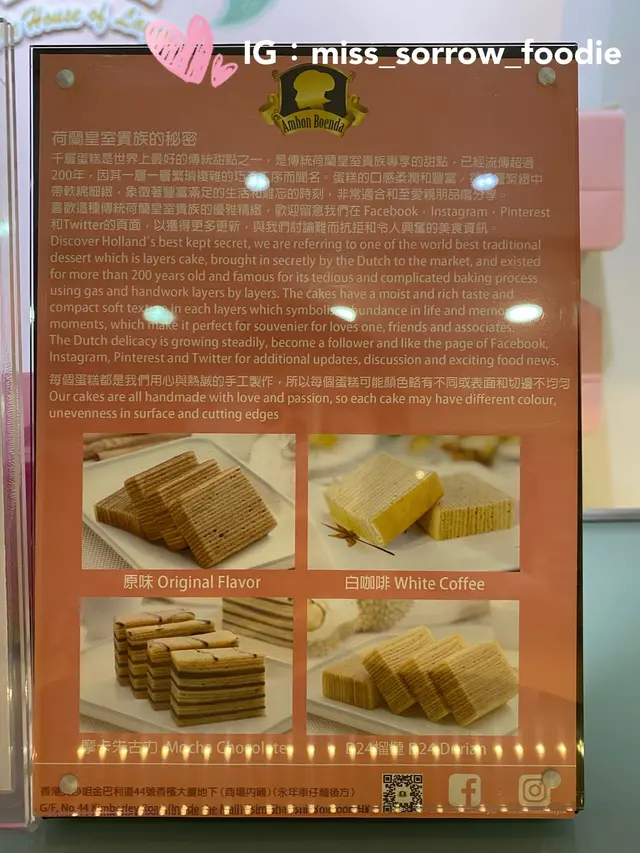 女仔就最鍾意搵啲靚嘅地方打卡同埋食個cake,今次比我發現尖沙咀呢一個小小的蛋糕天堂,這裏的環境同埋佈置都充滿着少女的氣息,而且蛋糕也是很有特色,聽聞都好多人會喺呢度做生日蛋糕或者係做一啲散水餅等等,簡直係一個隱性的蛋糕天堂。今日我就約埋好朋友嚟呢一度閑聊enjoy下呢個下午茶時段的蛋糕時間,所以專登尖沙咀香檳大廈地舖的the house of layers 食cake。原來這裏特色的蛋糕就是這款千層的糕點,而且係荷蘭皇室專用嘅糕點,難怪咁多人都特登嚟呢度買蛋糕,我們分別點了兩款口味,一款是出名的白咖啡味,另一款係特色的斑斕味,兩款口味都是味道香濃,而且千層的口感可以吃到不同層次,簡直每一口都既柔潤及豐富,再嘆番杯咖啡一邊食蛋糕一邊飲住杯咖啡真係非一般嘅享受。這裏還有一個大貓貓圖案作背景,所以很適合喜歡打卡的女孩子來這裏一邊食蛋糕一邊影相,想要是這種皇室的蛋糕嘅姊妹們千祈唔好錯過啦。…查看更多
