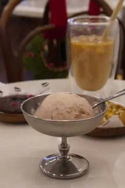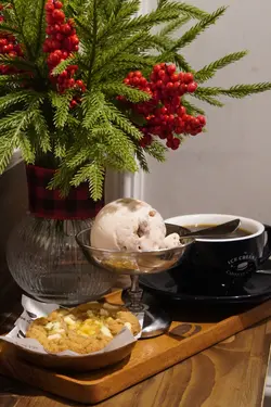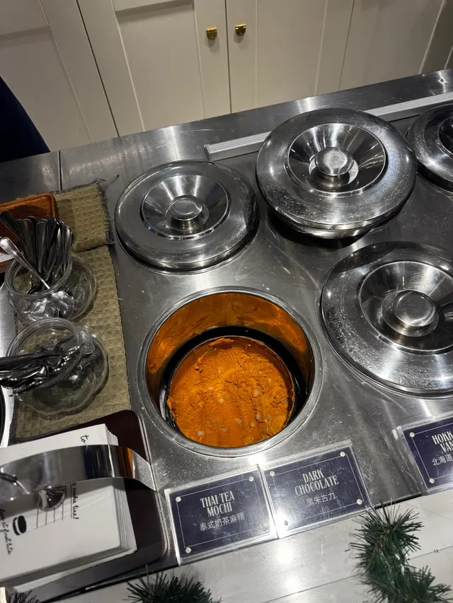 今次特地過嚟,淨係為咗佢嘅雪糕曲奇!點知撞到全新聖誕限定系列,舖頭環境都佈置得好,有聖誕氣氛,心情勁好款款賣相都靚到打卡無難度,味道更是冇得彈!重點推薦西班牙油條配雪糕,即叫即炸,咬落卜卜脆,外脆內軟正到癲!再蘸埋濃郁朱古力醬,配埋自選口味的雪糕,好味到停唔到口,一冷一熱好過癮冧酒栗子雪糕呢款又係超正👍唔會太甜 食到栗子的口感🌰雪糕球比平時的雪糕店大很多而且好鍾意佢哋嘅雪糕杯design可以金屬的質感更可保持雪糕的溫度更長慢慢食得冇咁快溶化配上咖啡 和這款充滿聖誕氣氛的蘋果批曲奇呢個配搭真係好完美