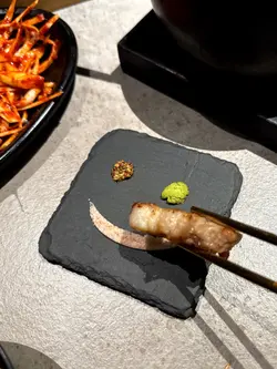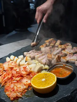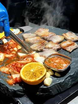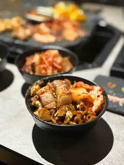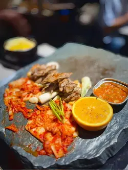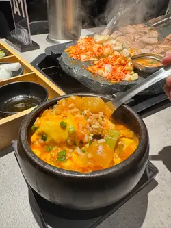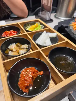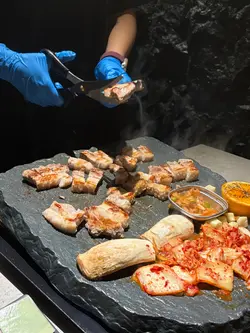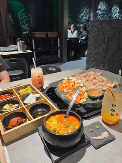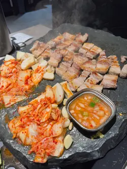 呢間韓式燒肉餐廳之前已經bookmark左🩶, 咁岩朋友係外國返黎, 所以同佢一齊黎食, 佢同我一樣都好喜歡韓式燒肉, 呢度裝潢十分型格😎, 座位舒適, 仲有K-pop聽, 好有韓國feel氛圍👏🏻!烤盤又好特別, 第一次見, 原來係特製同專登擺放斜斜地, 多出既油可以漏落下面, 不會好油👍🏻店家提供了幾款秘製醬料和開胃菜小食, 包括醃蘿蔔🥕和魷魚🐙, 仲有笑哈哈調味料, 好得意, 岩哂打卡! 我就最喜歡有店員會幫手燒埋, 因驚自己唔識燒會燒燶, 浪費了食材, 而家幫燒埋, 好開心😆*罈子五花肉🐷 + 炒飯🍚厚切五花肉份量都好多, 店員幫手烤到剛剛好不會老, 再剪成細細件, 有驚喜, 食落外脆內軟, 很香口和juicy, 肉味濃郁, 推介🧡!伴隨有泡菜, 蒜頭, 另外雞脾菇會煮熟埋, 夾埋一起食, 好有口感~呢個餐跟埋韓式炒飯🍛, 炒飯粒粒分明, 帶點微辣, 餸肉都好惹味~*韓式芝士蒸蛋🥚 ~ 芝士放上蒸蛋上面, 蒸得蓬鬆, 入面加了高湯, 蛋香味非常濃, 份量都十足, 建議趁熱食, 會較香濃*蕎麥拌冷麵🍜冷麵配埋牛展, 雞蛋和白蘿蔔, 比一般冷麵豐富, 冷麵食落爽口,配埋特製醬汁, 更加開胃*士多啤梨米酒🥃 ~ 士多啤梨味的韓式米酒,飲落清甜, 有米酒香氣,容易入口, 都好岩女士飲*芒果奇異果沙冰🍹 ~ 芒果和奇異果酸甜適中, 沙冰幼細, 好岩夏天飲又解膩…查看更多