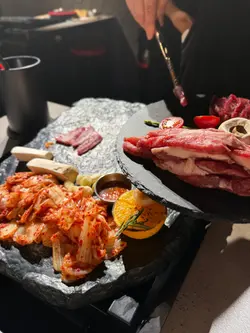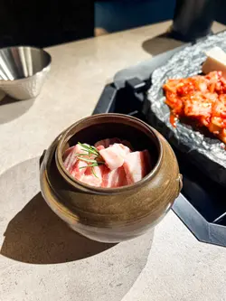 今日第一次食呢間石頭燒肉店「The JEJU」,銅鑼灣新分店設計以炭灰色石為主,深色調的牆面和木材,給人一種自然和粗獷的感覺。正宗韓國人經營嘅韓燒店,全程有職員服侍。 🐖A set. Hangari Pork Belly (450g) $338~168小時熟成五花肉,長時間的熟成過程,提升肉質的風味和嫩度。🐂Mango Beef Tongue $278 ~ 銅鑼灣限定!芒果、牛舌經過醃製和烤制,外焦裡嫩,口感獨特。🐖Pork Rinds $128~將醃製好的豬皮放在燒熱的石板上,用高溫來烹煮,令豬皮表面變得酥脆。外脆內嫩,油脂豐富,味道獨特,加上黃豆粉,口感更佳。🍚Salted Squid Fried Rice $58~魷魚醬炒飯,結合了鮮嫩的魷魚和香氣四溢的炒飯。🥛Dol Haruebang Choco Smoothie $58~ 濟州島石雕像嘅朱古力冰、Oreo 餅碎、朱古力沙冰。🍹Mango kiwi Smoothie $48…查看更多