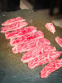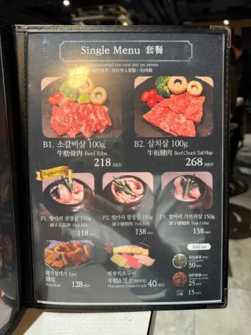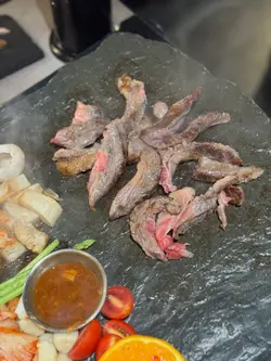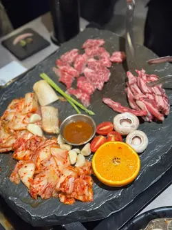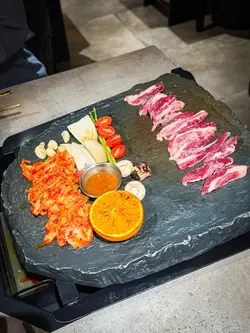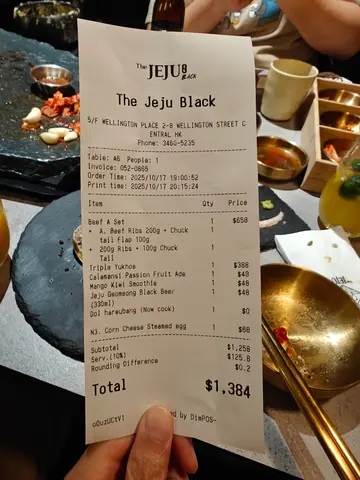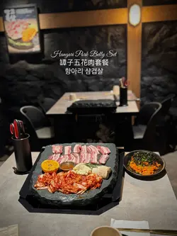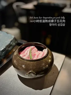 位於中環嘅🌟The Jeju Black🌟係一家🇰🇷韓國濟州燒肉店,剛開業不久🆕,已經好旺場🔥!店舖採用岩洞風格🪨嘅設計,連燒烤板都係彷石紋🪨,勁有誠意👍🏻!🥩牛肉套餐 Set A $658牛板腱肉 100g + 牛肋骨肉 200g牛板鍵肉嘅油花都幾靚,而牛肋骨肉軟腍中帶點爽口嘅筋位,肉品嘅質素good!斜面嘅燒烤版,有助流走過多嘅油脂,輕鬆燒至金黃色!會跟埋泡菜、蔬菜、菇、同埋橙,全程由店員操作!🥩黑松露韓牛生拌牛肉 $388韓牛嘅肉甜味真係好正,軟柔嘅口感,配搭黑松露增香,再來一點海膽及魚籽增鮮,好食到不得了!🍜蕎麥冷麵 $88韓式水冷麵,清爽滑溜,同燒肉好夾!🗿濟州爺爺 $78濟州島名勝石爺造型嘅甜品,好動L,配雪糕好睇好食,每天限量供應!🍓士多啤梨米酒 $68士多啤梨mix韓國米酒,酒味輕盈,唔錯!🍊漢拿峰梳打 $48採用濟州島特產漢拿峰,酸爽解膩!…查看更多