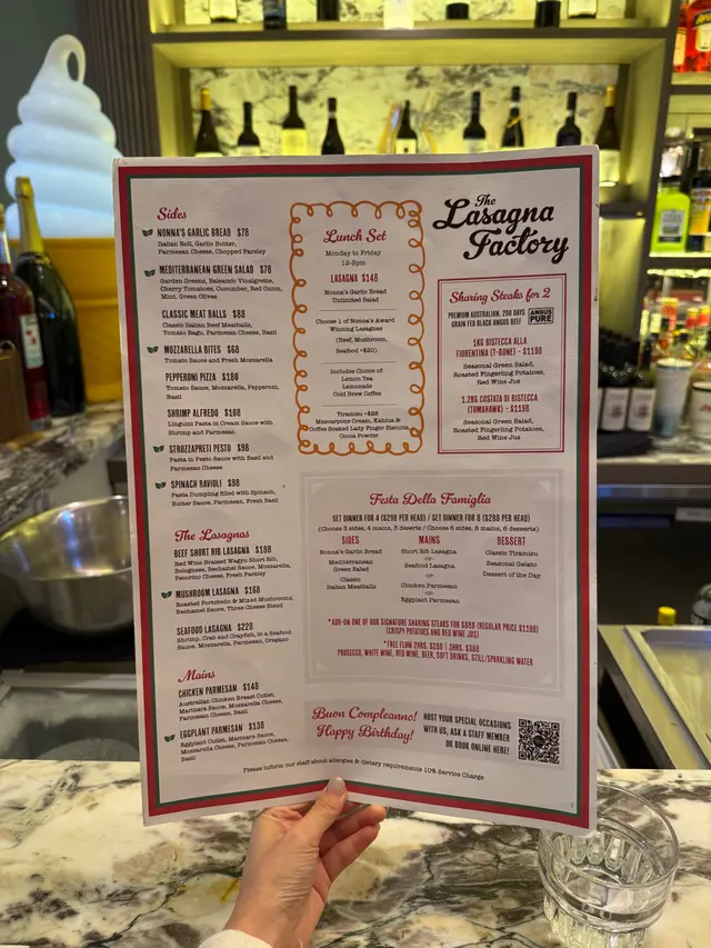 意外發現了一間適合慶生的餐廳!位於荷李活道的 the lasagna factory甫進門 紅色格子桌布映入眼簾散發着意式鄉村氛圍樓高兩層 面積超寬敞無論是朋友或家庭聚會都很適合餐廳主打數款千層麵跟經典意式小食午市千層麵套餐 $148 起配蒜蓉包跟無限沙律 性價比超高晚餐單點千層麵則在$200上下 也算是合理的價錢喔 ~跟友人不算太餓點了一款千層麵跟小食品嚐 都很有驚喜𓋪 ɴᴏɴɴᴀ's ɢᴀʀʟɪᴄ ʙʀᴇᴀᴅ𓋪 ᴄʟᴀssɪᴄ ᴍᴇᴀᴛ ʙᴀʟʟs自家製意式蒜蓉包上桌香氣撲鼻以意大利麵包抹上蒜蓉牛油加上巴馬臣芝士 鹹香又有層次必點蕃茄肉醬作基底的意大利牛肉丸肉味濃郁 質感軟綿 一口接一口很快K.O.𓋪 sᴇᴀғᴏᴏᴅ ʟᴀsᴀɢɴᴀ餐廳全新餐牌的其中一道千層麵把原有蟹肉千層麵做了升級除了有蟹肉 還有蝦肉跟龍蝦肉每一口都嚐到濃郁鮮味在口腔爆發法式白汁與千層麵口感相當配搭不用自己拆肉就能吃到滿滿海鮮懶人福音 𓋪 ᴄʟᴀssɪᴄ ᴛɪʀᴀᴍɪsᴜ意大利餐廳必點的甜品也是最近吃過最高質的 Tiramisu 口感絲滑綿密 入口不消數秒就化開濃厚咖啡香氣 卻不會覺得甘苦 充滿意式經典風味𓎺 ᴀʀᴀɴᴄɪᴀᴛᴀ (ᴏʀᴀɴɢᴇ) sᴀɴ ᴘᴇʟʟᴇɢʀɪɴᴏ sᴏᴅᴀ𓎺 ʜᴏᴍᴇᴍᴀᴅᴇ sᴘᴀʀᴋʟɪɴɢ ʟɪᴍᴏɴᴀᴛᴀ點了餐廳香橙梳打跟自家製檸檬氣泡水口感酸爽 也為千層麵解了一些膩感平常很少有機會嚐到傳統千層麵在這裏可品嚐不同口味的傳統千層麵感覺是千層麵控會收藏的寶藏餐廳…查看更多