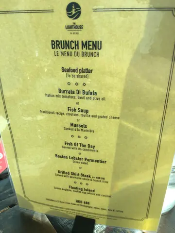 A sister restaurant to The Ocean by acclaimed Chef Olivier Bellin, The Lighthouse Bistro offers seafood-lovers a casual dining experience against the scenic backdrop of Repulse Bay. For gourmets who would go the extra mile in search for food with exceptional quality, here are our picks from the deep-sea navigation journey:THE BIG PLATTER (HK$888 for 2/3 persons) – True to its name, the size of this seafood platter is really impressive and perfect for sharing among families and big groups. Featuring three types of fresh French oysters, langoustines, brown crab, whelks, periwinkles and two types of shrimps*, the three of us barely managed to finish the platter before moving onto the next course. *Try having the smaller shrimps with bread and a generous amount of buckwheat-flavoured butter. This is the way the Bretons savour them as the servers told us. FISH SOUP (HK$88) – A classic French soup with croutons, rouille and grated cheese – a must-try item on the menu. The garlic croutons and saffron rouille perfectly complemented the sweetness and creaminess of the soup, yet adding to the recipe an extra savoury finish. Again, the portion size of the soup is quite generous, it is recommended to share between two people.BOSTON LOBSTER PARMENTIER (HK$188) – Another Chef Bellin’s signature yet a main course perfect for sharing between two people. We never thought Boston lobster and mashed potato would take us on such a deep dive through our senses. Not only does the sizzling lobster foam give off an intense aroma and richness of taste that lingers in our taste buds, the dish is perfectly cooked to add a hint of smokiness to the slight-crispy mashed potato pie. This is undoubtedly one of our favourite dishes!Unfortunately the Strawberry Millefeuille has run out when we ordered, we tried the GIANT PROFITEROLE (HK$88) and FLOATING ISLAND (HK$88) instead to end our night. The Floating Island with cooked egg whites and caramel is slightly too sweet to our taste, but we really enjoyed the Giant Profiterole – a crispy cream puff served with vanilla ice cream and hot chocolate sauce (it is very Instagram-worthy!). Situated from a stone’s throw from Repulse Bay overlooking one of Hong Kong’s most popular beaches among tourists, The Lighthouse Bistro also offers other seasonal seafood grills and main courses, which again are very affordable and great value for money! …查看更多