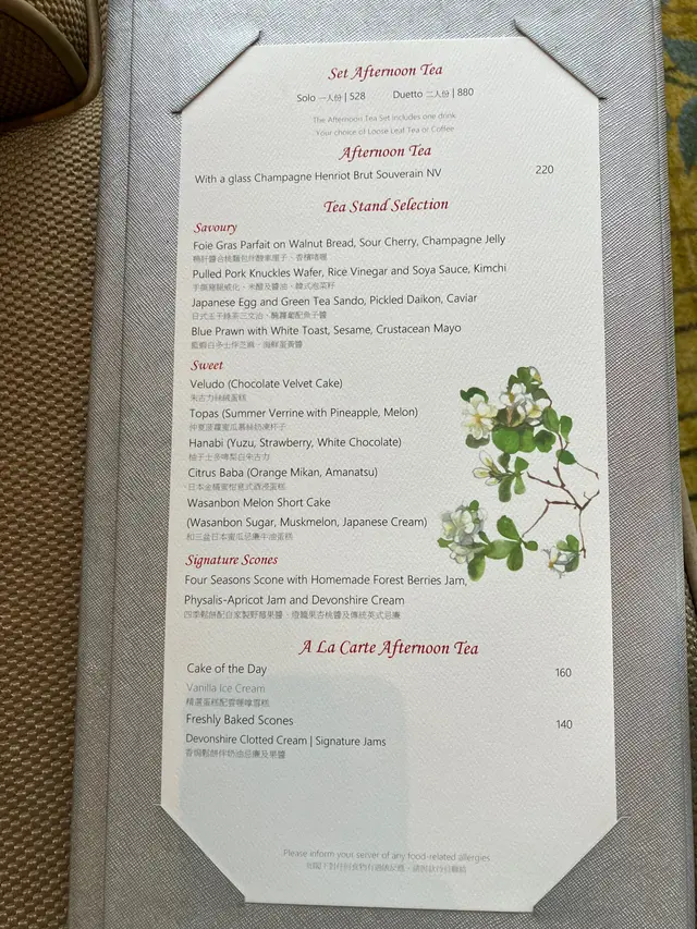 101 Days of Summer Afternoon Tea ($880/2ppl)鹹點有水準 scone果然係佢哋招牌 真心做得幾出色 其他甜點相對普通 好彩我都係中意食鹹點多過甜點hehe( * ॑꒳ ॑*)今次$440/1位嚟講 五星級酒店環境 食物賣相精緻 食物質素唔差 不過不失啦(果然期望值set得低就唔會有太大失落感🙂↕️不過當日服務質素仍有待改善 飲品方面就做得有啲求其 賣相好一般 杯hot latte嚟到唔hot的 又冇拉花so saddd(⸝⸝- -⸝⸝)……查看更多