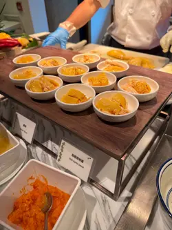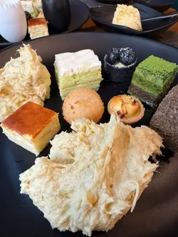 The Market自助餐這間酒店最出名是他的榴蓮甜品,雖然我不喜歡吃榴槤,但亦被這裡的自助餐排場所吸引,結果亦沒有令我失望。首先酒店的人流控制和管理做得很好,是人山人海,但秩序井然,沒有人插隊打尖,準時入場進食,氣氛甚佳。雖然人很多,但食物供應絕對足夠,補給的速度很快,沒有食物短缺的問題和疑慮。而且食物的質素很高,美味,質感,新鮮,設計又好有心思。有即煎的鴨肝,香口,脆皮,有油脂的豐腴香味,好吃得不得了。還有即切即吃的魚生,有三文魚,吞拿魚,都是我喜愛吃的刺身。非常新鮮,而且很香,很豪邁,有厚切選項,吃起來相當肥美,而且毫不油膩。是相當滿足的味覺享受。師傅毫不吝嗇,待客亦相當恭敬有禮。服務員也是相當親切殷勤。我最喜歡的甜品雖然不是榴槤,但是有我喜愛的朱古力雪糕,是Godiva品牌, 相當奢華,可以任食感覺相當幸福。朱古力味超濃郁,甜而不膩,入口即融,是極緻的味覺享受。還配上脆筒,材料擁有都非常新鮮。炸榴槤是另一款我很喜愛的甜品。脆皮做得非常好,有薄又輕盈,絲毫沒有半點油膩的感覺。而且是即場炸起的,難得吃到這樣新鮮的甜品,可遇不可求。榴槤的味道很突出。即使害怕吃榴蓮的人也會一試愛上,我就是其中之一。…查看更多