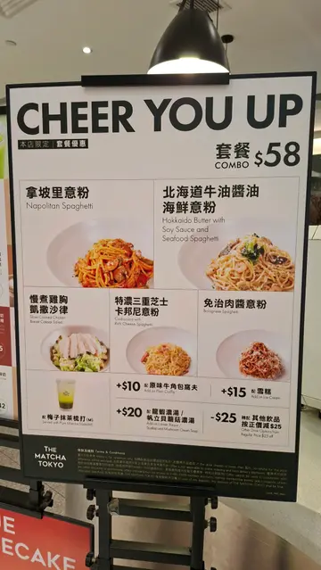 ✨今日行街行到攰,中午搵間餐廳食野抖下,經過Matcha Tokyo見佢有set lunch又唔洗排隊就入去試下。🍝Set Lunch - 拿坡里意粉意粉好腍,個汁都hea,冇乜配料,似叮叮意粉質素,冇咩可以唔洗試,真係貪平試下,填肚用。包左杯抹茶梳打,幾清爽但偏甜。🍨甜品 - 士多啤梨抹茶芭菲呢個芭菲超好食會覆卓,最頂係抹茶雪糕,然後有士多啤梨脆脆、cream、士多啤梨雪糕、士多啤梨醬、白玉。值得一讚係個脆脆超脆,通常店舖為方便出餐d配料都係裝起一大盒一大兜,會較易令材料受潮,但呢度個脆脆係比雪糕浸濕左表面都仲食到中間係脆,令成個芭菲多一重口感,配埋抹茶雪糕唔錯!白玉都超大粒煙韌,配埋雪糕果醬一齊食好正。加左個Croffle,唔夠熱唔夠脆唔夠香,冇咩特別。🍹飲品 - Matcha Latte抹茶濃而不澀,粉幼細,同奶blend得好好,唔記得叫少甜但都唔太甜,個平衡唔錯。🏠餐廳裝修以簡約風為主,水泥、木質靠牆位同白色小圓枱,唔算坐得舒服但食個快嘅ok接受啦。總結嚟講,set lunch冇咩特別,唔洗浪費卡路里試,填肚可以考慮,$58包野飲算係咁。甜品飲品都好味,黎食tea幾好,抹茶類嘅甜品飲品都高質,雖然定價少貴(用set lunch價錢比較的話),但用料高質份量實在,性價比高。…查看更多