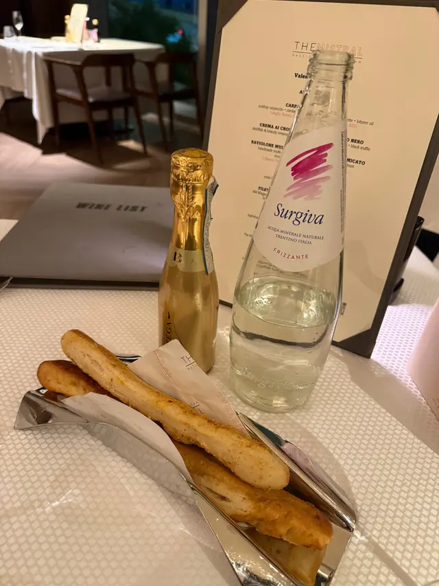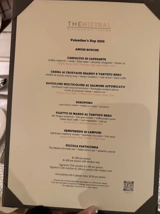 首先問下大家係咪「牛魔王」,每餐無牛不歡?如果答案是「係」的話,這一刻可以恭喜你,因為將會話比你聽一個好消息。人氣平鐵牛扒餐廳Flat Iron Steak 聯乘香港海景嘉福洲際酒店意大利餐廳 The Mistral限時推出T骨牛扒及斧頭牛扒半價推廣。由2025年9月16日起,香港海景嘉福洲際酒店 The Mistral 意大利餐廳,作出為期兩個月的優惠。逢星期二堂食只需以港幣$599(原價港幣$1198)即可享用重達一公斤的黑毛安格斯T骨牛扒;而星期四則可享堂食半價港幣$599(原價$1198)品嚐1.2公斤的黑毛安格斯斧頭牛扒。而且牛扒是即叫即燒,除了麵包籃外,每份套餐的Side Dish均伴以即炸薯條、沙律及牛油,實在非常豐富。由原條即切的牛肉,賣相果然澎湃,燒完之後外層帶焦香,配以紅酒更是味蕾的頂級享受。其實係兩三個月前,自己都參過 Flat Iron Steak係上環店所舉辦的肉腸製作班,當時由主理人 Johnny Glover親自指導下,炮製出一條條自家風味的肉腸,非常好玩。當然,The Mistral 都有好多其他菜色,先來一份 Argaosta,把波士頓龍蝦起肉,混和意大利Datterini 蕃茄及Saffron薯仔,放上了啖啖肉的龍蝦鉗,每口都是濃郁的龍蝦鮮味。再來是 Vitello,薄切的小牛肉,放上了松露及吞拿蛋黃醬及黑松露,口感豐腴,又有松露的幽香,我鍾意。至於 Tagliolini 既有亞拉斯加蟹肉、意大利辣肉腸及 Datterini 蕃茄,尤其是麵條蘸滿了惹味的醬汁,煮得又 al dente,水準好高。餐後再來酒店名物 Tiramisu,濕潤可口,灑面的可可粉入口甘甜,秒殺是容易不過的事。很滿足的一餐,尤其是半價下享用高質的牛肉,更是機會難得。優惠日期:由2025年9月16日至11月21日。 …查看更多