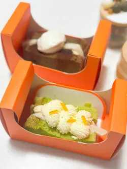 係之前開心果祭嘅時候已經試過 the mochiffon cake 嘅開心果切件蛋糕. 蛋糕係標榜少糖少油同埋唔加防腐劑. 而且佢嘅麻糬同埋鬆軟嘅蛋糕睇令到我念念不忘今次朋友生日喺旺角食飯. 就比多個藉口我再去買佢哋嘅蛋糕嚟食🤣可以透過網上落單門市取貨. 而門市亦有部分產品可以即場去買估唔到竟然比我撞到秋冬系列. 有壽星鍾意嘅栗子味. 所以就買咗焙茶栗子麻糬蛋糕. 外貌已經好打卡🥰內餡有焙茶戚風蛋糕、日本焙茶忌廉、低糖甘栗忌廉、日本甘栗粒、招牌煙韌麻糬同低糖牛奶忌廉焙茶戚風蛋糕除咗非常之鬆軟濕潤之外仲充滿濃厚嘅焙茶味. 甘栗忌廉口感既綿密亦帶有甜甜嘅香味. 同焙茶嘅味道相映成趣忌廉輕盈不膩. 麻糬超級煙靭帶有啖淡奶香. 成個蛋糕口感好豐富. 而且好足料. 四個人都食唔晒個蛋糕😂