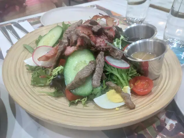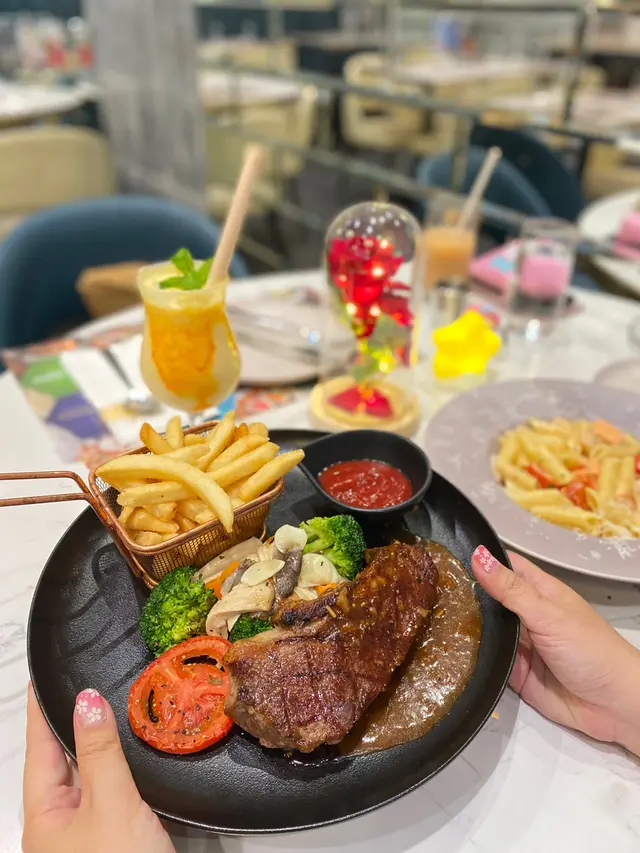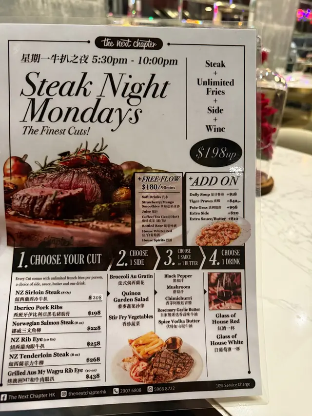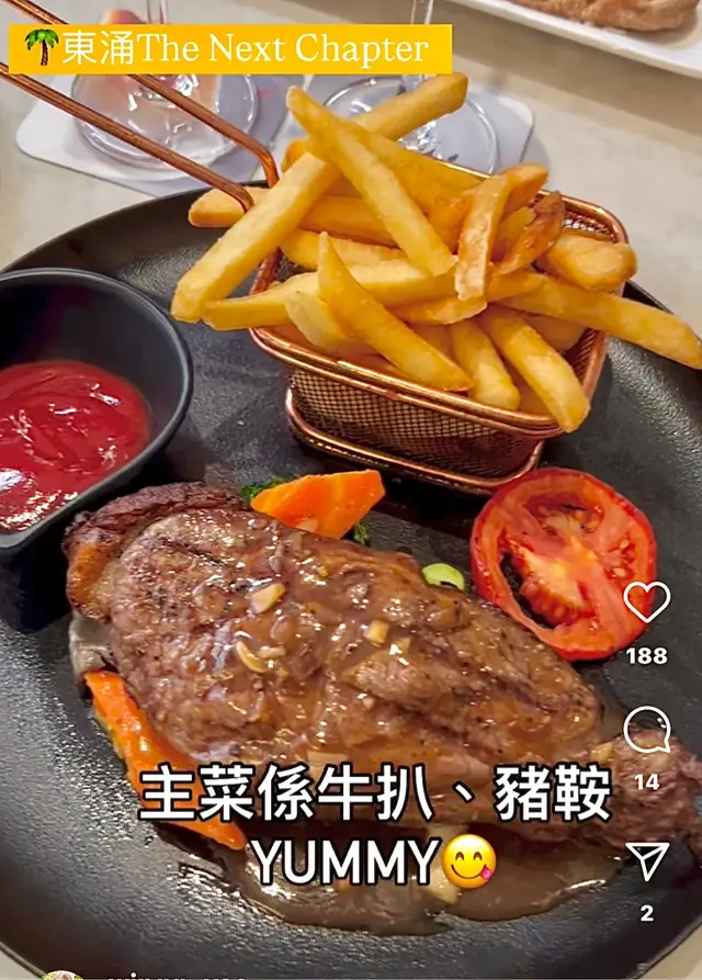 近海濱附近嘅一間餐廳由東薈城穿過天橋 唔洗5分鐘就到哩度食物yummy😋環境好chill半開放式環境仲可以帶埋寵物嚟一齊食架!🐶餐廳每日都會推出不同優惠✅生日仲free酒今次我哋叫4道菜午餐都好抵食架!🔸沙律、餐湯新鮮蔬菜配藜麥,伴黑醋,好fresh!甘筍湯口感濃郁但清爽,唔會膩口,食到原本嘅甜味。🔸主菜:▶️炭燒紐西蘭西冷牛扒($178)一切開非常juicy!牛味適中、口感柔軟有性彈,炭燒好香!推介✅▶️烤英國穀飼保濕豬鞍($158)厚切豬鞍肉質粉嫩,口感好鬆軟、一d都唔鞋👍🏻!而且唔會有豬羶味!好好食😋2款主菜都伴有炒雜菜及炸薯條,薯條超香脆又有薯味good。🔸甜品及咖啡奶凍好滑呀!再配埋杯香濃熱咖啡成件事好滿足!…查看更多