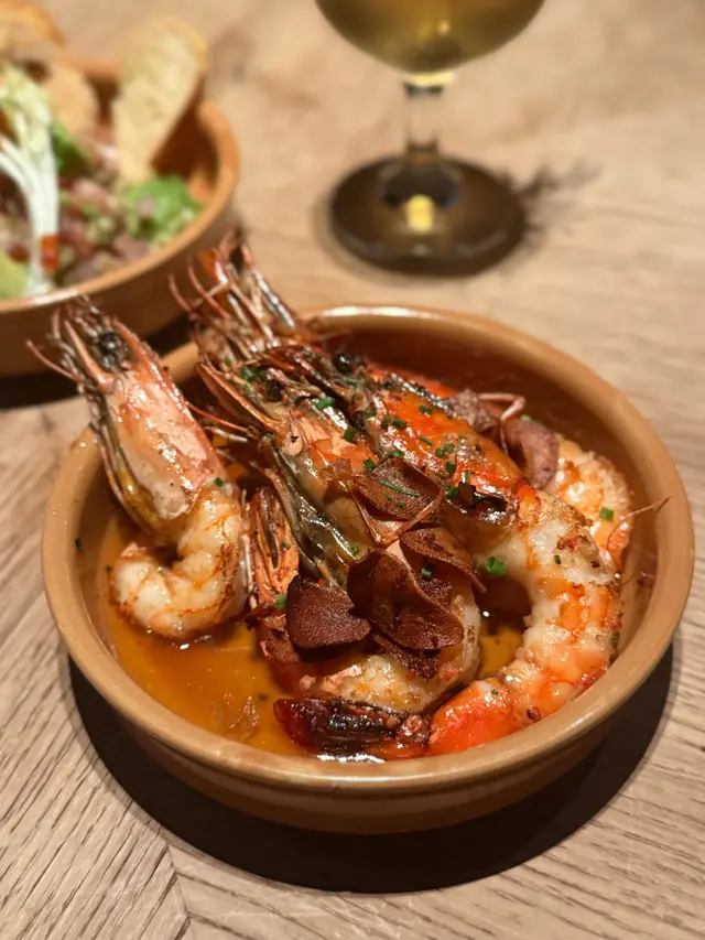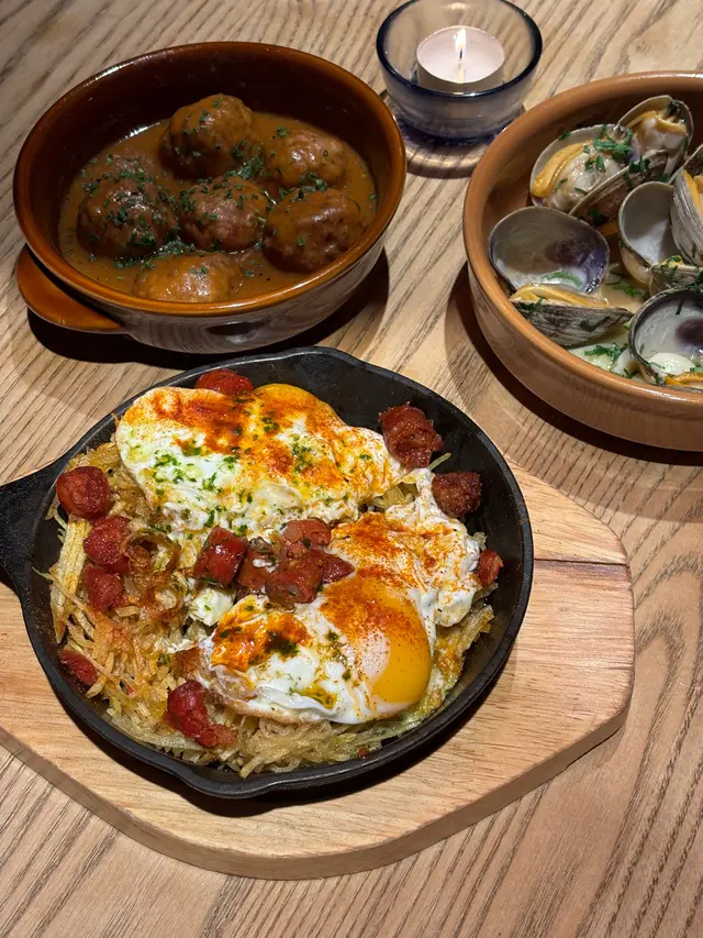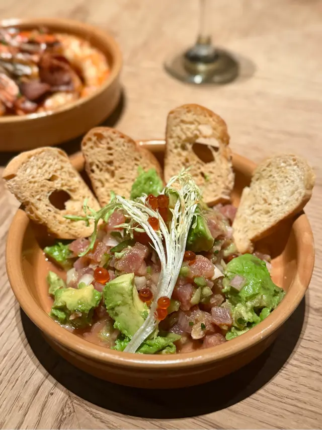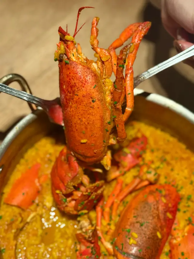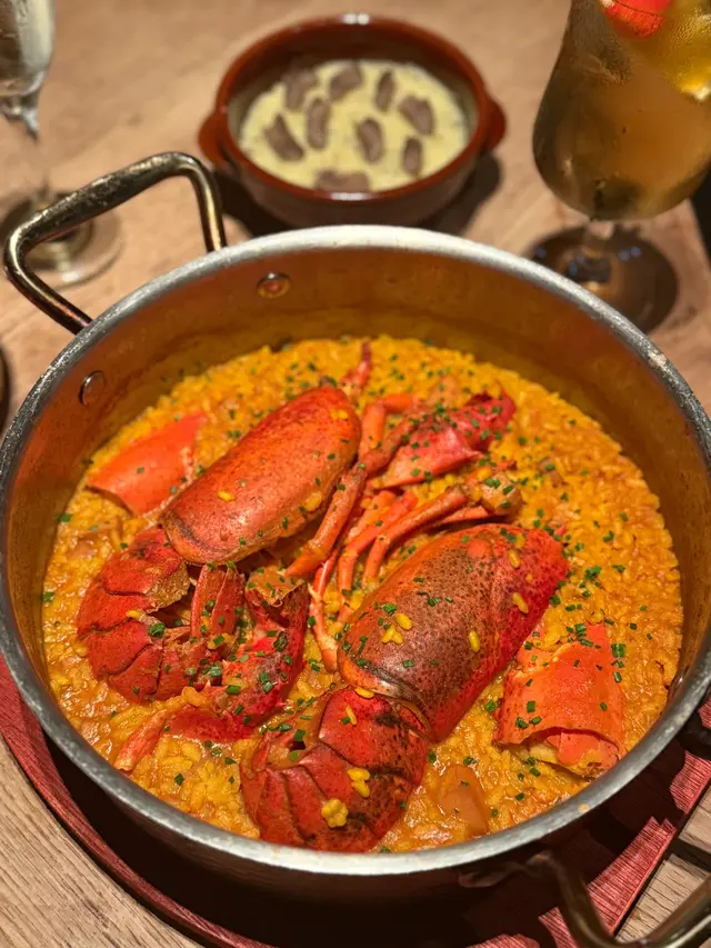 😮好難得見到平日三層都坐爆場嘅餐廳! 🇪🇸呢間西班牙菜餐廳超高性價比! $700/2人竟然有齊前菜、主菜、配菜同埋甜品! 我地見之前原價要$500 per head,而家做緊優惠,即刻黎食!餐廳位於灣仔,有3層用餐區,裝潢古典雅緻,staff亦好識同客人互動帶動氣氛,黎慶生、朋友或家庭聚會, business meeting都好岩! 見同場有生日慶祝,waiter會即席彈結他唱生日歌🎸🎂睇到唔少有尷尬癌紅都面晒嘅I人🤣我地點咗Dinner set,先黎前菜➡️”Baby Squid 香草油墨魚仔",墨魚仔鮮嫩彈牙,搭配香草油提升咗味道,每一啖都有海鮮嘅鮮味,食落去好開胃!🤤➡️”Txistorra Broken Egg 西班牙紅椒香腸流心蛋",係必點推介! 西班牙香腸帶少少煙燻味,鹹香惹味,流心蛋一戳就蛋黃流晒出嚟,加埋d脆條,令口感層次更加豐富!👍🏻黎到主菜➡️”Juicy Lobster Rice 原隻波士頓龍蝦燴飯"🦞,個飯吸盡龍蝦汁精華,飯芯保持咬口唔會煮到爛融融。波士頓龍蝦蝦肉唔黐殼,不過個人認為有少少overcook唔夠彈牙,同咪呢道菜係share plate即係1道=2人份,點佢就會揀少樣主菜~佢嘅side dish都唔馬虎,➡️”Truffle Potato Mash 松露薯蓉",滑到好似食緊薯蓉慕絲!黑松露油落得夠重手,每啖都食到松露香味👍🏻 口感輕盈又唔會過於油膩,配飯或單食都好正!☺️最後甜品揀咗➡️”3” Cheese Cake 3吋芝士蛋糕",超級大份,真係有3英吋高!芝士味濃得嚟唔漏,中間有藍莓醬中和膩感,甜度適中,完場甜品揀佢穩陣冇伏!😋➡️”Churros Bite 西班牙油條粒",即炸熱辣辣,油條粒外脆內糯,砂糖肉桂粉灑得夠豪爽😍沾埋朱古力醬罪惡感爆棚,真係完美搭配!👍🏻本身見餐廳評價參差,見有優惠就抱住一試無妨嘅心態去食,唔知係咪改善咗,成個食餐體驗感覺好好,食物整體都好高質抵食,絕對係會放入回訪list,希望佢keep住水準啦👍🏻…查看更多