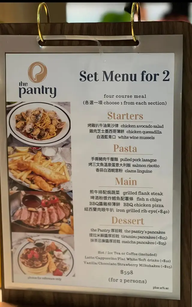 為了慶祝女兒完成小六第一個呈分試考試,期待用優質美食為女兒留下美好回憶。選擇了葵芳新都會廣場的「The Pantry Cafe」,餐廳裝潢採用簡約時尚風格,主調是溫暖淺木色系,配搭柔和黃光,讓用餐氣氛倍感舒適和溫馨。餐桌及座椅以木質為主,並且空間寬敞。整體感覺簡潔有格調,令人十分放鬆。二人晚餐套餐有四道菜及兩杯飲料。頭盤精緻:白酒煮青口 (White Wine Mussels)一開始的白酒煮青口色澤誘人,青口鮮甜肥美,白酒醬略帶酸香,與蒜香交織,家人都吃得津津有味,女兒更讚不絕口。每一顆青口都新鮮飽滿,配上酥脆麵包沾湯享用,令人意猶未盡。Pasta:手撕豬肉千層麵 (Pull Pork lasagne Roll)手撕豬肉千層麵以番茄醬為底,酸甜不膩,層層意粉柔軟,每一口都感受豬肉的香味和質感。醬汁濃郁、肉碎分量足,家人一致稱讚份量適中又很有誠意,特別適合小朋友。主食:紐西蘭肉眼牛排 (Iron Grilled Ribeye) - 慶祝必選選了份量十足的紐西蘭肉眼牛排(加購),肉眼牛排以鐵板煎至外層微焦,肉質鮮嫩多汁,帶有豐富油脂,切開後呈現誘人粉紅色,每一口都能嚐到牛肉的香氣和肉汁。配合烤蒜薯條和兩款醬汁(忌廉蘑菇燒汁和紅酒燒汁),無論原味還是蘸醬都同樣美味。肉眼部分特別柔軟,有淡淡牛油香,吃起來有彈性又不過於肥膩。肋骨部分保留了骨髓和油花,風味更濃郁,肉質略有嚼勁。骨位烤焗得香脆,膠質和牛香交織特別突出,咀嚼感十足。吃到最後還可以品味骨香,是肉食愛好者不可多得的享受。飲品:香草奶昔 (Vanilla Milkeshakes) - 清新滋味香草奶昔作為套餐額外亮點之一(加購),選用大量雪糕打製而成,入口特別冰涼厚滑,奶昔質地非常濃稠。每一口都感受到豐富奶香及雪糕的甜美,而且不會太膩,非常適合小朋友,女兒一口接一口,為整頓晚餐加添歡樂氛圍。甜品:提拉米蘇班戟 (Tiramisu Pancakes) - 極致鬆軟提拉米蘇班戟絕對是亮點。班戟厚而鬆軟,彷如雲朵般輕盈,入口即化,口感細緻。上層覆滿提拉米蘇忌廉,微微苦甜,搭配新鮮莓果與巧克力粉,味道層次多變,視覺亦非常吸引。女兒一邊吃一邊說像棉花糖,沉醉於這份甜美之中。女兒非常滿足,期待下次再來。…查看更多
