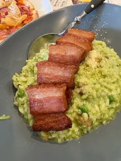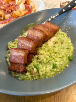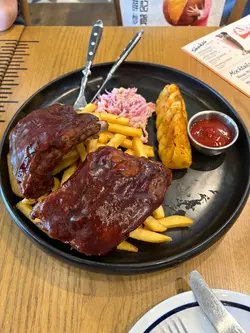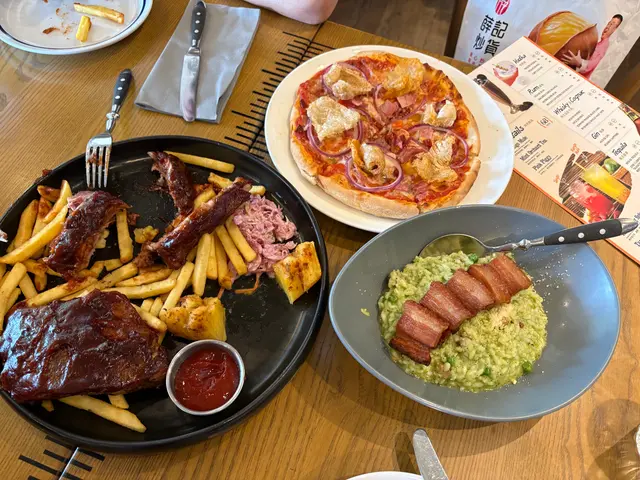 我們點了一個9寸的招牌薄餅signature piggie, 食材十足又高質,品嘗起來就像在歐洲吃的一樣美味。點了一份慢煮醬燒豬肋骨:份量大、居然有二大塊,肉質細嫩,烤得很好吃。連拌菜薯條、烤菠蘿也是出色。烤豬腩肉西洋菜燴意大利飯:這個也很有特色,好吃,就是好像放得太多油了。總體而言,這家餐廳的出品很"歐式",烹調認真、味道出色,而且餐廳的裝飾設計也很精緻漂亮,適合打卡拍照。唯一的缺點就是有點小貴,人均二百多元。