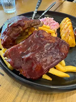 呢日黎到將軍澳呢間pizza pig, 係近住海傍間donki, 食完飯仲可以去隔離行街原來呢度逢星期三pizza有買一送一既優惠,真係好抵食,我地叫左兩個pizza,一個係signature piggie, 一個係mexican shrimp, 前者真係啱哂食肉獸,啖啖肉,仲有d炸豬皮係面頭,真係啱哂我!另一款mexican shrimp 就勁多蝦肉,同埋超香芝士仲有牛油果味,食落夠哂fresh! 多到我地都食唔哂,要拎走~另外我地仲叫左豬肋骨,佢入面配左薯條同埋菠蘿,有菠蘿食落真係夠哂解膩,超舒服!豬肋骨好入味,同埋d肉都好易脫骨,個醬超惹味!薯條又夠哂脆,一流!