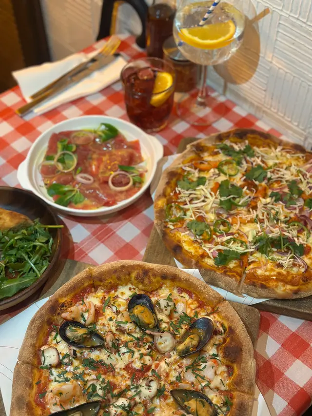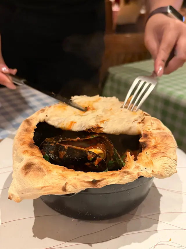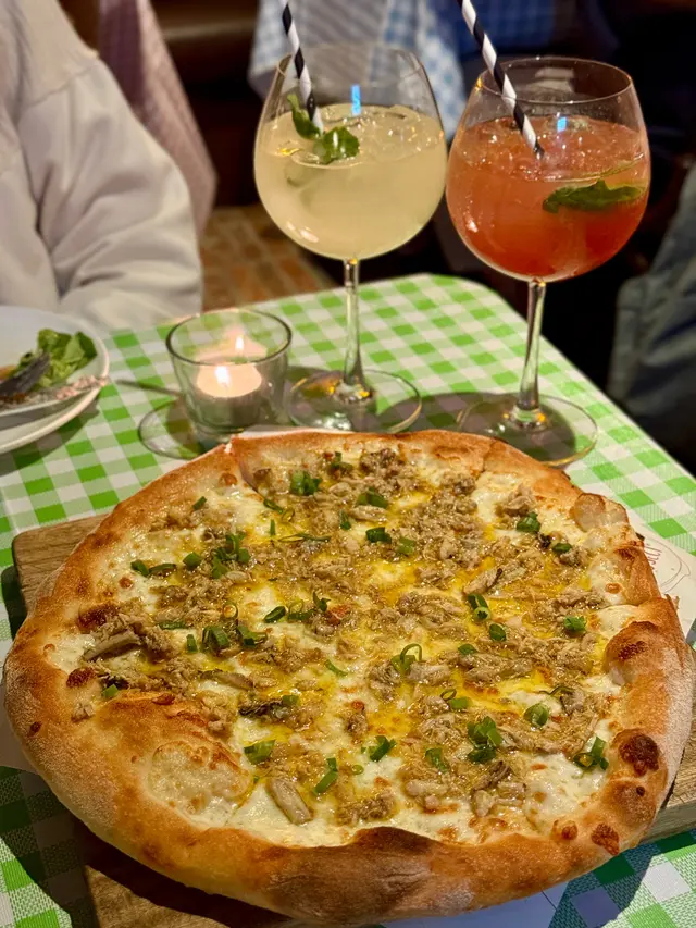 呢間 The Pizza Project 氣氛特別好侍應全部都超有活力又熱情❤️似去左朋友屋企食飯咁輕鬆舒服The pizza project採取開放式廚房設計睇住師傅即場整pizza真係流晒口水🤤我地試左Set Dinner每人一個前菜一個pizza一個甜品女仔真心要share分量超多Mussels Cocotte用左pizza 皮當酥皮咁蓋住青口入面青口新鮮爆汁Pizza 皮仲可以用黎蘸茄汁一滴都唔浪費🤭另一款前菜試 Tuna Carpaccio酸酸地嘅橙汁dressing好開胃期間限定嘅 Clams Pizza 有驚喜!Clams通常只係seafood pizza嘅配角但原來做主角都好好味蜆肉多又鮮甜加檸汁更加提升鮮味批底薄又脆口唔會太飽濟仲有Carnivore pizza有六款肉腸、煙肉等一次過滿足肉食控勁邪惡!甜品tiramisu 極嫩滑咖啡味、酒味、芝士味平衡份量不算太多一個人食啱啱好🥰Strawberry milk ice cream面上係厚厚忌廉底下就係果味鮮香嘅士多啤梨雪糕同香滑牛奶雪糕一餐半餐豁出去了🫣臨走侍應仲送上餐後酒同我地乾杯添~…查看更多
