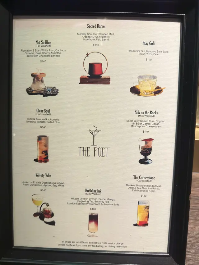 位於中環蘇豪區嘅speakeasy酒吧🍸主打特色cocktail 經常與不同品牌crossover合作The Vacationist 用上Mezcal & Genever 加入紅蘿蔔|香蕉|斑蘭|乳酪 面頭薄片用上紅蘿蔔蓉 經過三個鐘嘅dehydration後壓成整體果味較重 飲落creamy幾舒服The Nostalgic Expat用上Calvados & Whisky 加入薑|胡椒|百香果|可可豆薑味好出好refreshing 黑胡椒帶點刺激感鍾意薑同埋辣辣哋感覺嘅朋友必試!The Mademoiselle用上Rye Whiskey|Fino Sherry|紅白酒|士多啤梨|楊桃面頭係用洛神花同仙人掌制成嘅氣泡飲落非常清新 果香味重 適合唔係好飲得酒味嘅朋友——————————————————推介度: 8.5/10——————————————————📍 The Poet中環蘇豪士丹頓街13號地舖——————————————————…查看更多