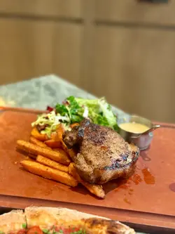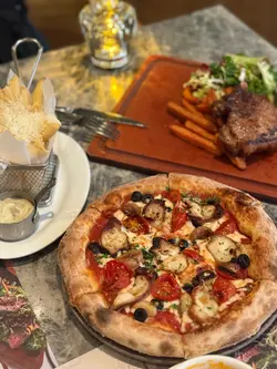 餐廳環境舒適, 予人悠閒感覺! 每日餐湯係蕃茄湯,係幾creamy~口感綿密八爪魚pizza(9吋)令人驚喜,餅底薄脆帶焦香,八爪魚鮮嫩彈牙,辣味番茄醬係幾夾,有豐富層次。Parmesan Truffle Fries起司松露薯條外面係撒左好多帕爾馬起司,薯條炸得外脆內軟,松露醬都幾夾加拿大豬鞍係以slow cook 模式去煮,所以會有少少粉嫩,但佢係屬於正常嫁!肉質鮮嫩多汁,燒烤火候掌握得宜~份量唔算好多,但成落都好夠。sides 仲有蕃暑條同埋沙律,可以中和番個口氣~套餐設計具彈性,適合二至四人分享。服務人員態度友善,上菜速度適中。特別推薦薄餅系列,係真係能試到正宗意式風味。