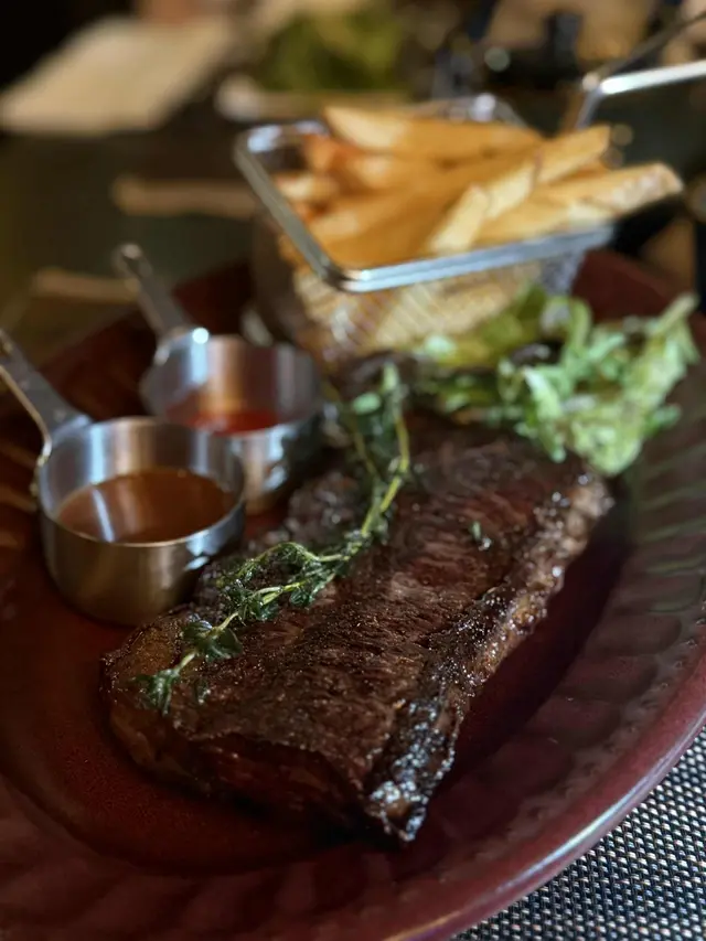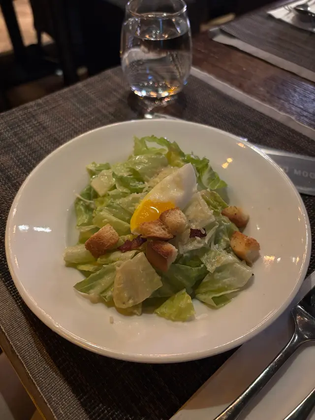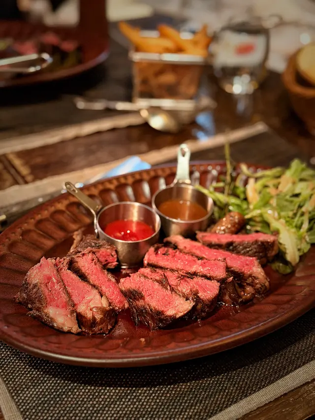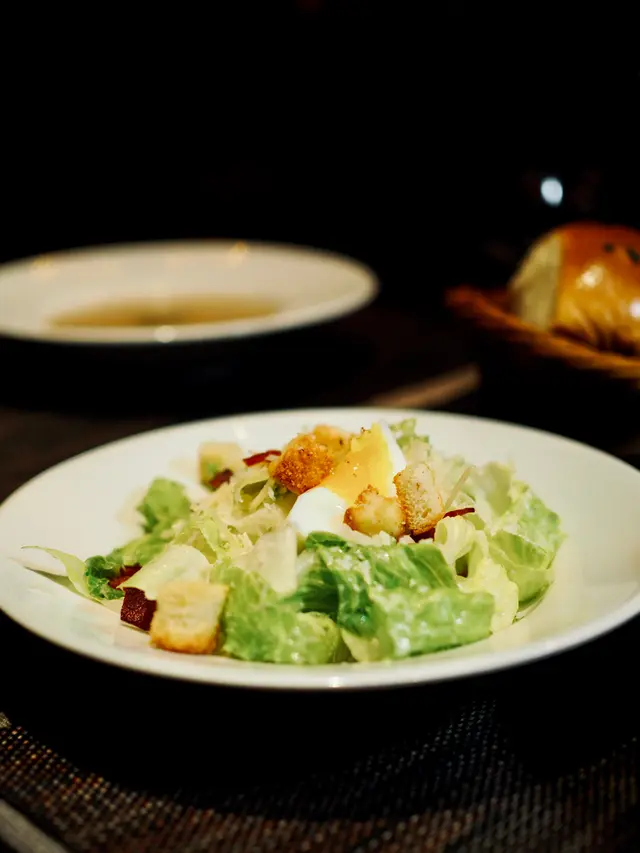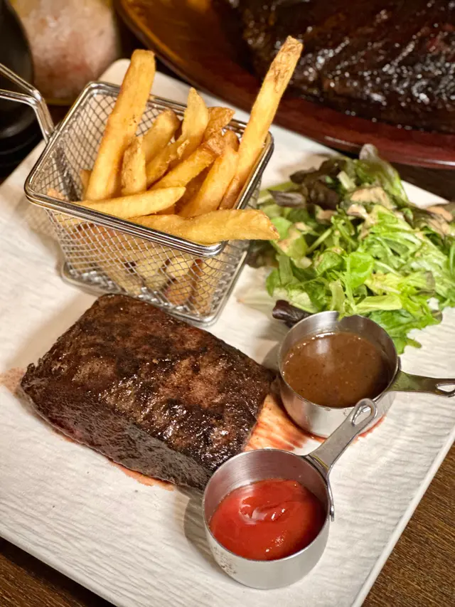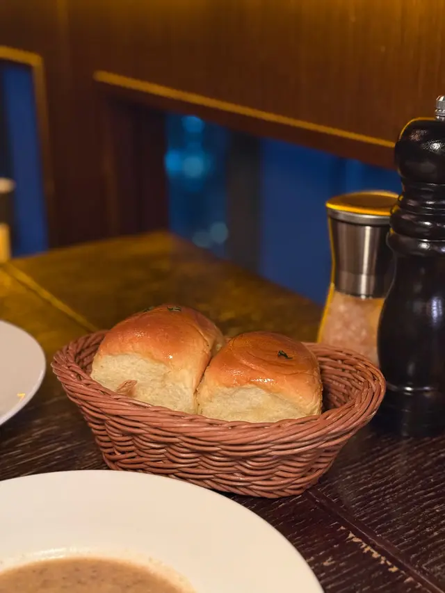2025年9月25日 星期四今晚難得同太太兩個人食飯,於是選擇咗一間比較有情調嘅餐廳,就係位於灣仔軒尼詩道餐廳裝修得非常有格調,無論燈光、音樂同氣氛都好浪漫,非常適合兩個人拍拖黎到餐牌有晚市套餐可以選擇,一個價錢就包咗幾個前菜同主食,而主食仲有好多唔同肉嘅部位可以揀,仲有餐飲添,於是我哋就每人叫左一個set點完餐之後等左一陣食物就開始陸續送到,首先有前菜凱撒沙律,沙律味道清爽,生菜脆口,煙肉鹹香微脆,配上濃郁芝士粉同香滑凱撒醬,層次分明麵包粒酥脆不硬,而水煮蛋更令整體更滑順,口感豐富又開胃餐湯有蘑菇湯,個湯質感濃滑,入口即化,帶有淡淡奶香同蘑菇既天然鮮味香草點綴提升層次,令整體味道更有深度每一口都暖胃又舒服,簡單但令人回味呢個係自家製百里香蒜蓉牛油餐包,餐包外皮金黃微脆,內裡鬆軟帶微微煙韌,咬開即滲出香濃牛油百里香清香淡雅,蒜蓉味濃而唔太霸道,完美融合,令人一口接一口停唔到主菜方面我哋分別要左230g安格斯牛頸脊牛扒同230g 美國平鐵牛扒,兩樣都要大約5成熟,牛扒外層煎至微焦,鎖住肉汁,切開時肉質嫩滑多汁,帶有濃郁牛香而安格斯牛特有既油花令口感更豐富,配上香草與醬汁,味道層次分明,令人回味無窮美國平鐵牛扒就肉味濃郁,油脂分布均勻,煎至外層微焦,內裡仍然保持嫩滑每口都帶有焦香同牛肉本身既鮮味,口感紮實但不韌,啱晒鍾意原汁原味嘅牛魔王最後埋單每人四百幾蚊左右,食得好滿足…查看更多
