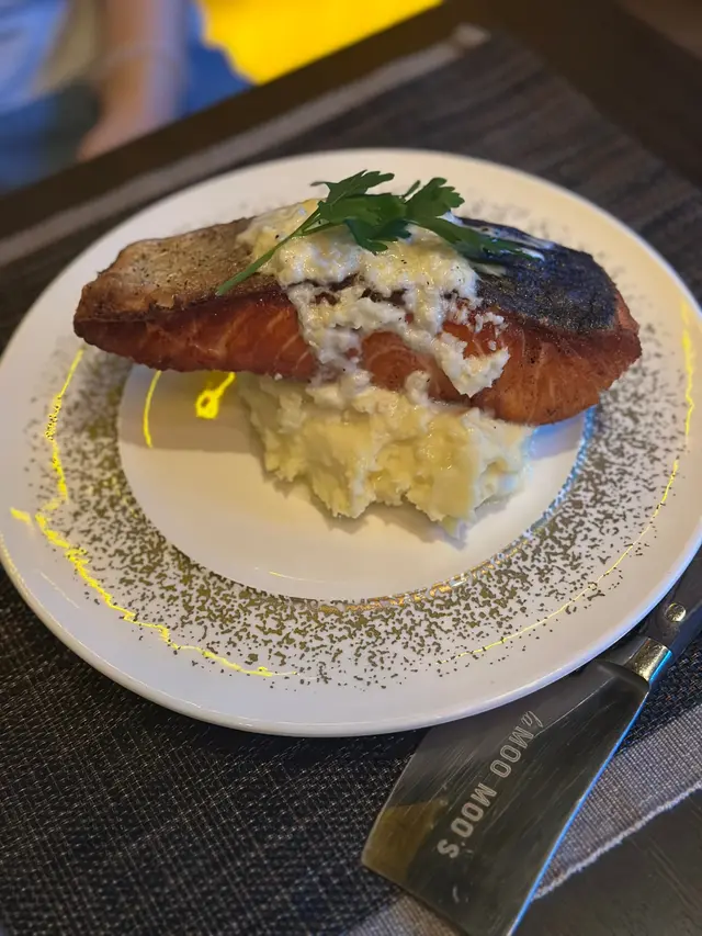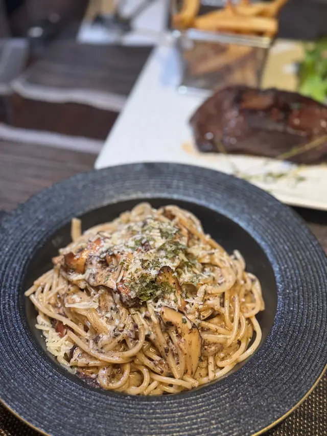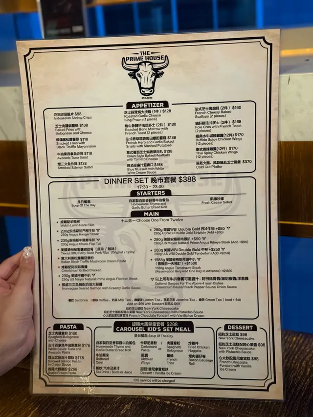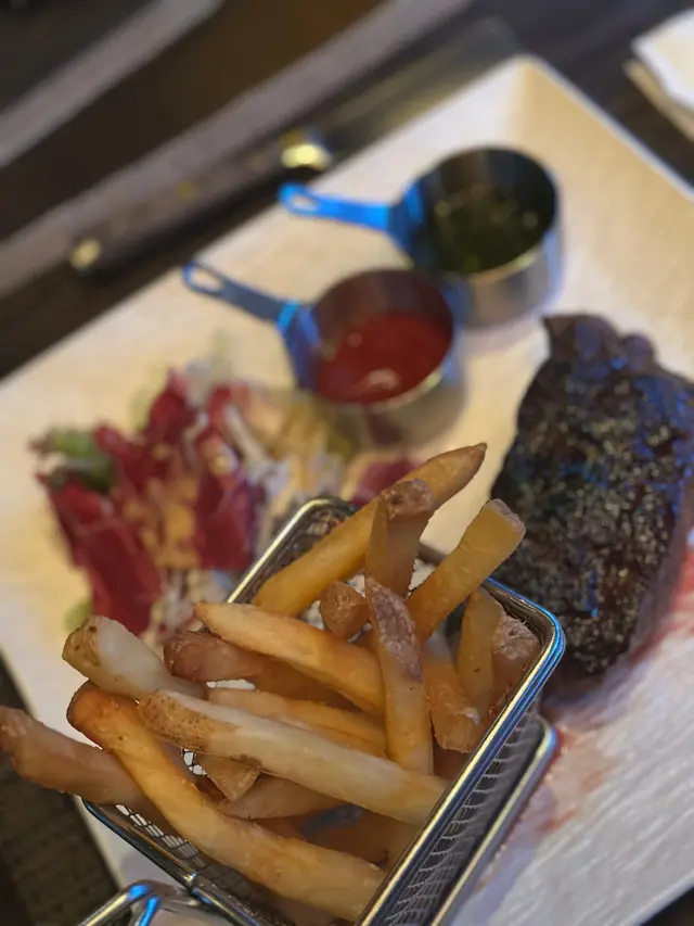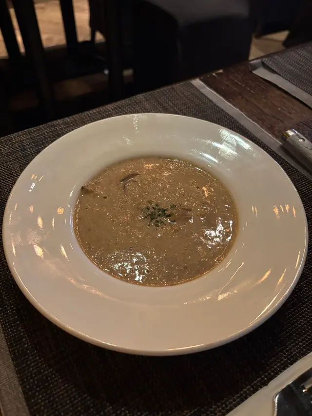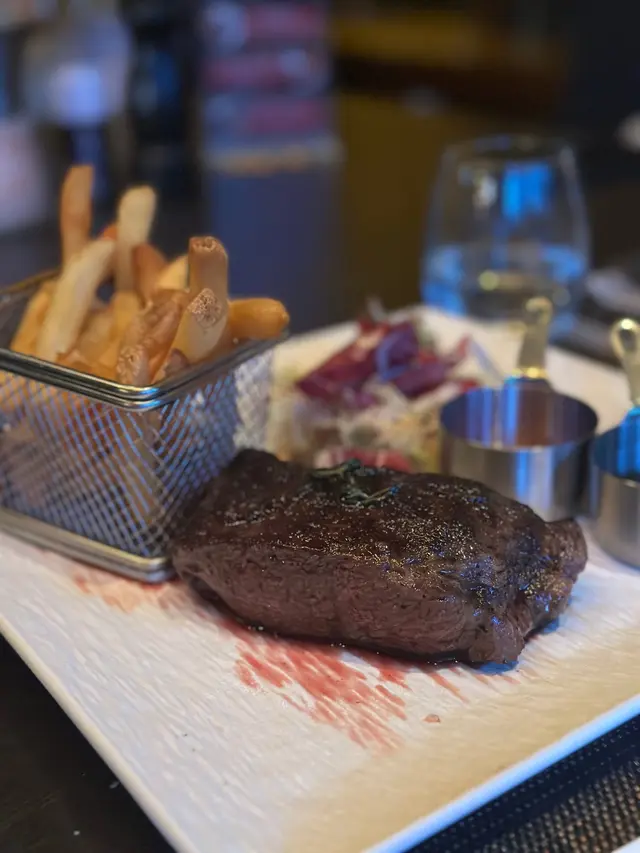 2025年9月25日 星期四今晚難得同太太兩個人食飯,於是選擇咗一間比較有情調嘅餐廳,就係位於灣仔軒尼詩道餐廳裝修得非常有格調,無論燈光、音樂同氣氛都好浪漫,非常適合兩個人拍拖黎到餐牌有晚市套餐可以選擇,一個價錢就包咗幾個前菜同主食,而主食仲有好多唔同肉嘅部位可以揀,仲有餐飲添,於是我哋就每人叫左一個set點完餐之後等左一陣食物就開始陸續送到,首先有前菜凱撒沙律,沙律味道清爽,生菜脆口,煙肉鹹香微脆,配上濃郁芝士粉同香滑凱撒醬,層次分明麵包粒酥脆不硬,而水煮蛋更令整體更滑順,口感豐富又開胃餐湯有蘑菇湯,個湯質感濃滑,入口即化,帶有淡淡奶香同蘑菇既天然鮮味香草點綴提升層次,令整體味道更有深度每一口都暖胃又舒服,簡單但令人回味呢個係自家製百里香蒜蓉牛油餐包,餐包外皮金黃微脆,內裡鬆軟帶微微煙韌,咬開即滲出香濃牛油百里香清香淡雅,蒜蓉味濃而唔太霸道,完美融合,令人一口接一口停唔到主菜方面我哋分別要左230g安格斯牛頸脊牛扒同230g 美國平鐵牛扒,兩樣都要大約5成熟,牛扒外層煎至微焦,鎖住肉汁,切開時肉質嫩滑多汁,帶有濃郁牛香而安格斯牛特有既油花令口感更豐富,配上香草與醬汁,味道層次分明,令人回味無窮美國平鐵牛扒就肉味濃郁,油脂分布均勻,煎至外層微焦,內裡仍然保持嫩滑每口都帶有焦香同牛肉本身既鮮味,口感紮實但不韌,啱晒鍾意原汁原味嘅牛魔王最後埋單每人四百幾蚊左右,食得好滿足…查看更多