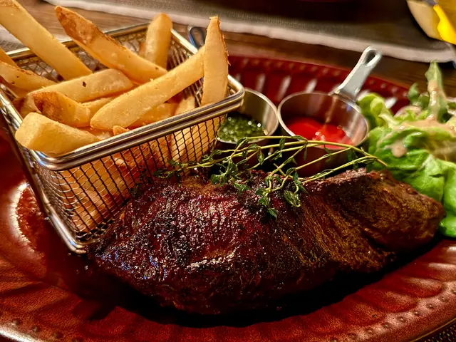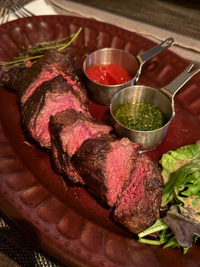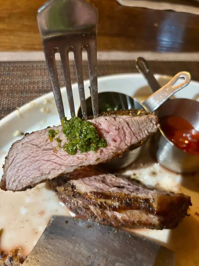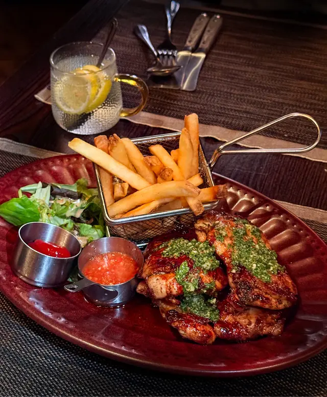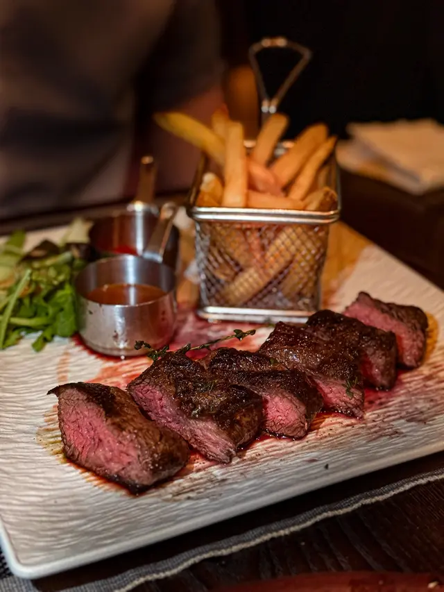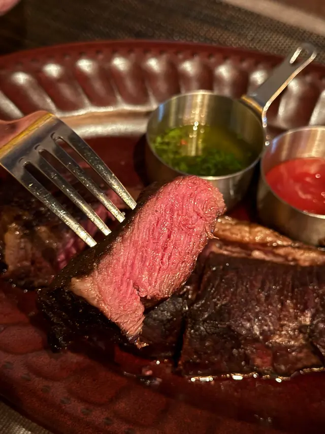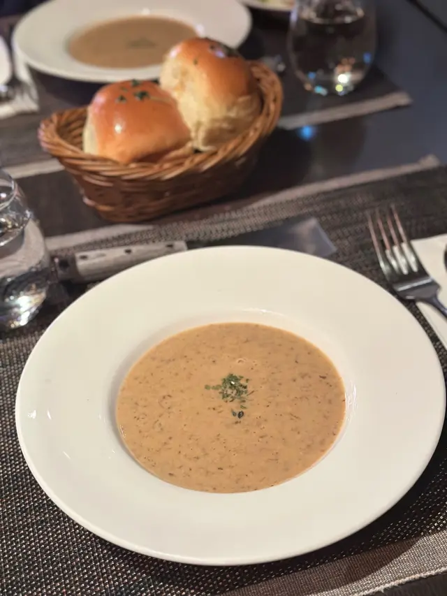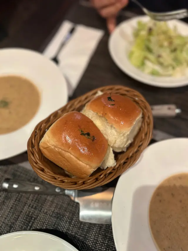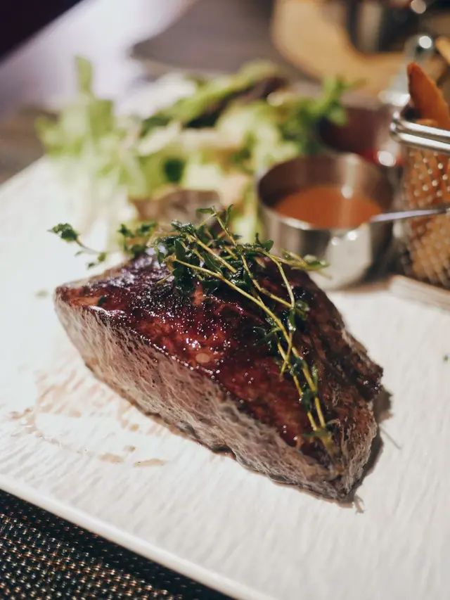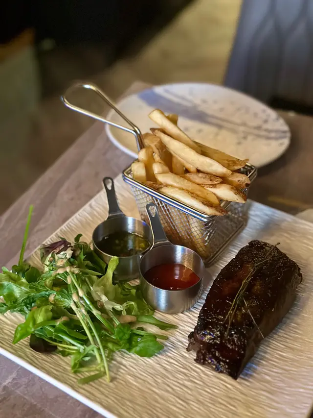 我同家姐都係牛扒控, 間唔中就周圍尋覓下有咩西餐好食, 早排係網上搵到依間係灣仔區專食牛扒既餐廳, 見到Menu有Dinner set一於去食下佢咩料分別有頭盤是日餐湯, 自家製百里香蒜牛油餐包同凱撒沙律餐湯係蘑菇湯, 未飲已經聞到好香濃既蘑菇味, 飲落好Creamy同食到一粒粒蘑菇碎, 配佢地個自家製百里香蒜牛油餐包一齊食超夾, 個餐包個蒜香牛油味好強烈, 外皮係搽左層蒜香油, 完全唔同平時去扒房食嗰啲表面乾身嗰種, 係有誠意既餐包, 超好味而凱撒沙律每份都有四分之一隻雞蛋, 整體調味啱啱, 芝士粉唔會過多, 生菜都幾爽口開左個胃, 終於等到主菜出場, 有部分主菜係唔需要額外加錢, 我地就叫左依個280g美國WBI Double Gold 西冷牛排 (另+$50), 點左五成熟, 每個牛扒都可以自選醬汁, 依份配左阿根廷青醬, 配菜係脆炸薯條, 西冷牛排以炭烤方式煮法, 中間粉嫩色澤剛好係五成熟, 食落牛味好突出, 肉味香濃, 個牛脂香好正, 口感軟熟帶少許咬勁, 唔會太過冧身, 另外點阿根廷青醬估唔到個味道又幾清新, 鍾意食羅勒既人會喜歡另外塊係280g美國安格斯肉眼牛扒 (另+ $90), 一樣點左五成熟, 依份配左黑胡椒醬, 炭烤方式真係無得輸, 同樣煎得剛剛好, 口感比較有咬勁, 牛肉味道比西冷更濃郁, 點黑胡椒醬食完全係100%夾, 加埋黑胡椒香咁食真係回味無窮。 我地超欣賞啲薯條炸得好酥脆, 食落有薯味之餘, 放左陣凍左都依然係脆口, 另外不得不讚依度啲牛扒份量都算幾大塊, 我地兩姐妹各自食280g食一半都已經7成飽, 以依個份量如果男士黎一定夠食!餐飲叫左杯熱茉莉花茶同凍檸檬茶想食甜品可以加錢點, 又或者可以出去自取任食雪條同雪米糍, 真係可以食返夠本先埋單走人! 店員都服務好友善, 落單之前都溫馨提示我地邊款係需要加錢, 食完執碟既時候都問返我地覺得啲野食點, 埋完單仲好開心同我地講再見, 超窩心!…查看更多