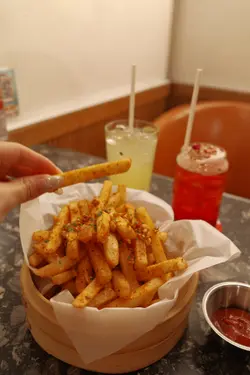 ⁂⁎◝#尖沙咀🇭🇰 高質西餐酒吧 啱晒聚會睇波⚽️⁎◜⁂.餐廳-環境好chill 有室內室外座位仲有大大個螢幕可以一班friend黎睇波😎氣氛一定超好👍🏻 食物質素都唔錯除左佐酒小食 食正餐都ok!.✧香辣蒜粉shake shake薯條 $78呢個係新出既shake shake薯條 真係一試愛上勁大份 辣粉香味十足 沾滿晒所有薯條薯條新鮮炸起 外脆內軟 係好粗好大條既薯條 熱辣辣好惹味!🌶️好岩黎飲酒/睇波個陣當小食 真係會食到停唔到口🤣.✧啤酒漿炸蝦 $148有6隻超大既蝦 每隻都好有咬口好彈牙啤酒漿令炸皮更香脆 食落好有口感有蛋黃醬同洋蔥醬 點炸蝦食好好味 推介😚.✧輕煎北海道帶子 咸蛋黃汁意大利飯 $218帶子新鮮厚身 輕煎後外脆內嫩配上咸蛋黃汁意大利飯好特別 鹹香creamy有層次感👍🏻 本身我都鐘意食咸蛋黃製既野呢個意大利飯又拿捏得幾好 唔會過鹹.✧Passion Fruit Lemonade $68✧Puppy Love $78飲品都好有特色 特別係佢地既cocktail / mocktail顏值高又好飲😚 岩晒打卡🤣..*・゜゚・*:.。..。.:..。. .。.:*・゜゚・*𝘙𝘢𝘵𝘪𝘯𝘨: 4/5𝘙𝘦𝘷𝘪𝘴𝘪𝘵: yes*・゜゚・*:.。..。.:..。. .。.:*・゜゚・*𝘍𝘰𝘳 𝘮𝘰𝘳𝘦 𝘪𝘯𝘧𝘰𝘳𝘮𝘢𝘵𝘪𝘰𝘯:📍The Right Place🗺️尖沙咀寶勒巷17-19號地舖..#mytaste_尖沙咀#mytaste_西餐…查看更多