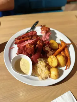🍝【Mega Box隱藏高質西餐】今日同朋友去咗Mega Box 11樓嘅 Salted Pig 食晚餐🐷!估唔到商場裡面有間咁高質嘅西餐廳,主打慢煮料理同手工薄餅,環境開揚仲有沙發位,坐得超舒服,食物都有好有驚喜!🍅番茄牛肉面頰意粉(配羅勒、巴馬臣芝士)牛面頰經慢煮,肉質纖維完全融化,用叉輕輕一拮就散開,番茄醬係每日新鮮熬製,酸甜天然唔假🍅,意粉掛汁力max!灑滿巴馬臣芝士碎同新鮮羅勒,鹹香帶草本香氣。🐔 慢煮三黃雞(甘筍、粟米、法邊豆、肉汁)用咗法國三黃雞慢煮,雞皮烤到金黃脆口,肉質Juicy到滴汁💦~底層鋪滿甘筍粟米,吸盡雞油精華!肉汁濃郁帶香草味,建議撈埋薯蓉食。🐟 焗比目魚柳地中海風情海鮮盛宴,比目魚柳厚肉嫩滑,魚皮焗到微脆。白酒海鮮湯底超鮮甜,有大蝦、青口、橄欖同薯仔🥔,仲有檸檬皮增添清香!湯汁飲埋都唔口渴,感覺好輕盈。🍕豬手薄餅(9吋)餅底手工製作,邊位脆口帶麵粉香。toppings鋪滿手撕豬手肉、意式香腸、火腿同烤燈籠椒🌶️,水牛芝士拉絲效果誇張!豬手鹹香惹味,配甜辣燈籠椒平衡油膩,9吋夠2-3人share~…查看更多