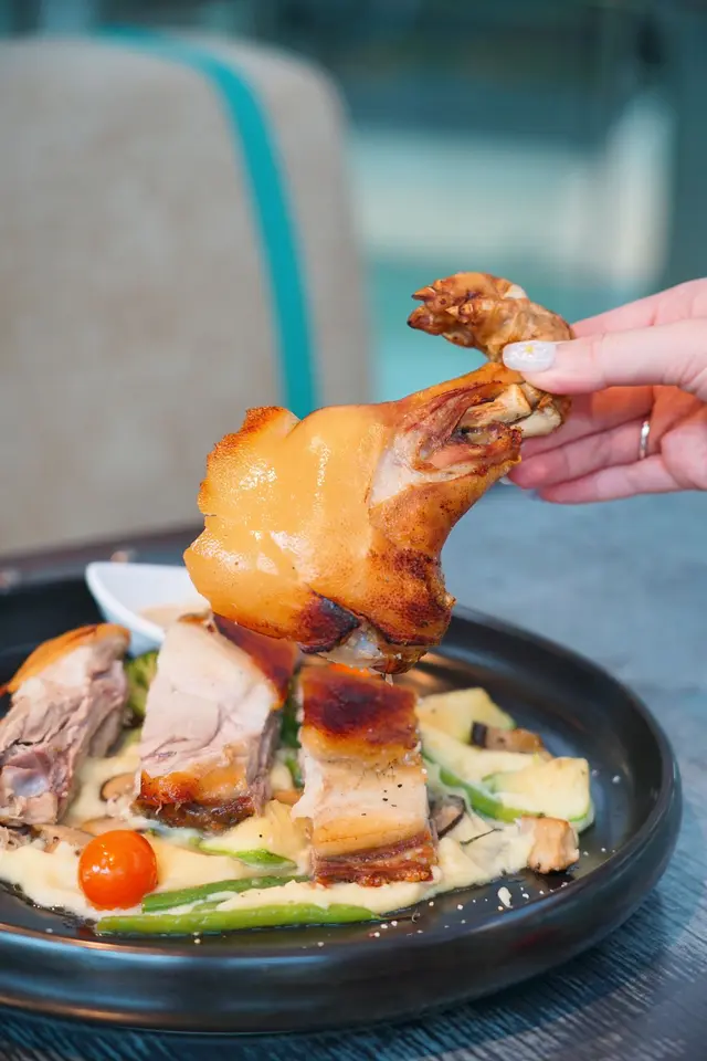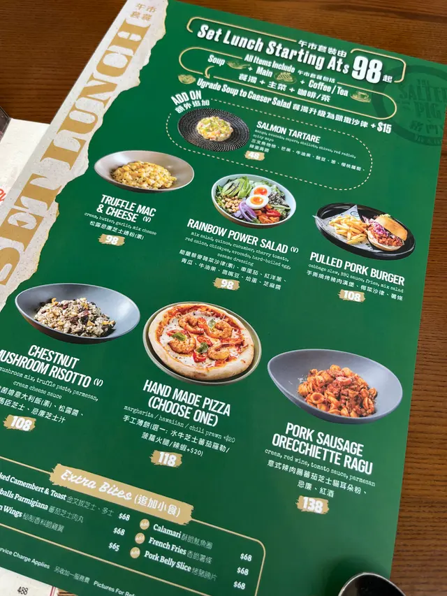🌹今年公司團年飯,中餐都爆滿,唯有選其他,在OpenRice搜尋訂位,發現了《Salted Pig》,這間食店在鯉景灣很久,雖然一直沒有去過,見它有開分店,又睇過下食評,又有位訂,便決定揀它。🌹食店位於葵芳站新都會廣場,交通便利易找,不用上到餐廳樓層,遠處已望見隻飛豬在店前。餐廳屬半開房式,部分座位是溶入商場內,感覺是較光猛,優閒風格。一行7人,每人點了自己的喜好🍴西京燒比目魚$98