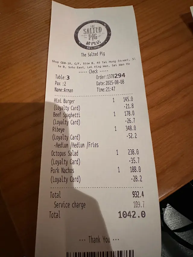 嚟到西灣河碼頭,梗係要搵間chill vibes嘅餐廳食飯就赫然見到呢間Salted Pig,覺得幾有氣氛,就一於試吓一坐低呢度啲Staff就好熱情咁招呼我哋,值得一讚1️⃣ BBQ Ribs ($288)到今日最期待嘅煮食豬肋骨,一上碟就覺得非常驚喜,因為豬肋骨嘅份量真係好多,粗略估計都足足有十支骨,而且真係好厚肉,呢款豬肋骨嘅肉唔係入口即溶嗰款,有啲咬口,加上好濃郁嘅美式BBQ醬風味,又飽肚又香口半碟嘅薯菜都份量十足,除咗有滿滿墊底嘅薯條之外,仲有好好食嘅沙律椰菜絲,我哋兩個人食到捧住個肚走!超級滿足!2️⃣ Prawn Salad ($168)呢款大蝦沙律有芒果、牛油果等配菜,加埋酸辣汁,味道十分過癮,沙律菜一啲都唔馬虎,有唔同種類嘅蔬菜,食落輕盈又健康,大蝦作為主角當然都好好食,蝦身十分滑溜,啖啖肉,非常滿足3️⃣ Salted Pig Tea ($88)•Sour Apple呢款飲品雖然叫做Tea,但其實係混合咗幾種唔同酒嘅Cocktail酒香濃郁,加上我哋叫咗酸蘋果口味,又再增添咗一啲清新嘅果香,用嚟伴菜真係一流!…查看更多