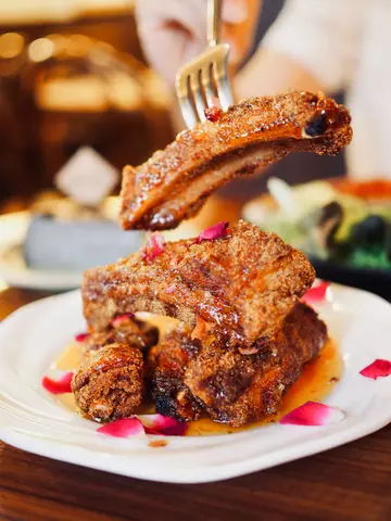 朋友新居入伙,想添置幾個盆栽粉飾家居,這天陪朋友到花墟逛完後,在附近找了這間Café 享用下午茶。走進店內已經感受到濃厚的復古英倫氛圍,以木系簡潔裝潢和傢俬搭配暖黃燈光,讓人有種慢活的悠閒感。店內供應多款和洋料理與甜品,最特別是設有生酮餐單,已生酮多年的我當然不會錯過。✾ All Day Breakfast ($98)七彩繽紛的All Day Breakfast 內容豐富,牛油果新鮮綿滑、煙三文魚鹹香清爽、炒蛋嫩滑帶奶香、香蒜雜菇彈牙多汁、香腸肉香四溢,搭配新鮮沙律菜和鬆軟麵包,味道平衡又美味。原本好想試試他們的生酮麵包,可惜是日生酮版本的All Day Breakfast 已售罄。✾ 封門柳拼牛油果 ($165)果然是自稱太子必食封門柳,牛扒熟成度恰到好處,肉質嫩滑多汁,牛味出眾,媲美扒房級數。將切片的牛扒搭配Keto friendly 的牛油果,淋上檸檬汁食用,在享受牛肉鮮美的同時,也能攝取牛油果的豐富油脂與滑順口感。✾ 玫瑰蜜糖豬肋條 ($68)豬肋條外皮炸得酥脆,輕力撕開已骨肉分離,再塗上玫瑰蜜糖,甜蜜中滲透玫瑰花香。✾ 芝麻巴斯克蛋糕 ($58)蛋糕口感濕潤綿密,芝麻香氣與濃郁的芝士完美匹配,甜而不膩。◦•◦♡.﹀﹀﹀.♡◦•◦♡.﹀﹀﹀.♡◦•◦♡.﹀﹀﹀.♡◦•◦𖠿 The Site @thesite_cafe𖤣𖤥 香港太子西洋菜北街161號地下A號舖◦•◦♡.﹀﹀﹀.♡◦•◦♡.﹀﹀﹀.♡◦•◦♡.﹀﹀﹀.♡◦•◦💕喜歡我的分享,記得follow我:@peggie.dailylife#peggiedailylife_princeedward#thesitecafe #太子美食 #太子 #西餐 #木系 #英倫風 #復古 #咖啡店 #lunch #dinner #afternoontea #alldaybreakfast #keto #ketohk #hkketo #ketofriendly #生酮 #低碳 #甜品 #香港美食 #香港打卡 #打卡 #香港好去處 #foodie #foodiehk #hkfoodie #hkfood …查看更多