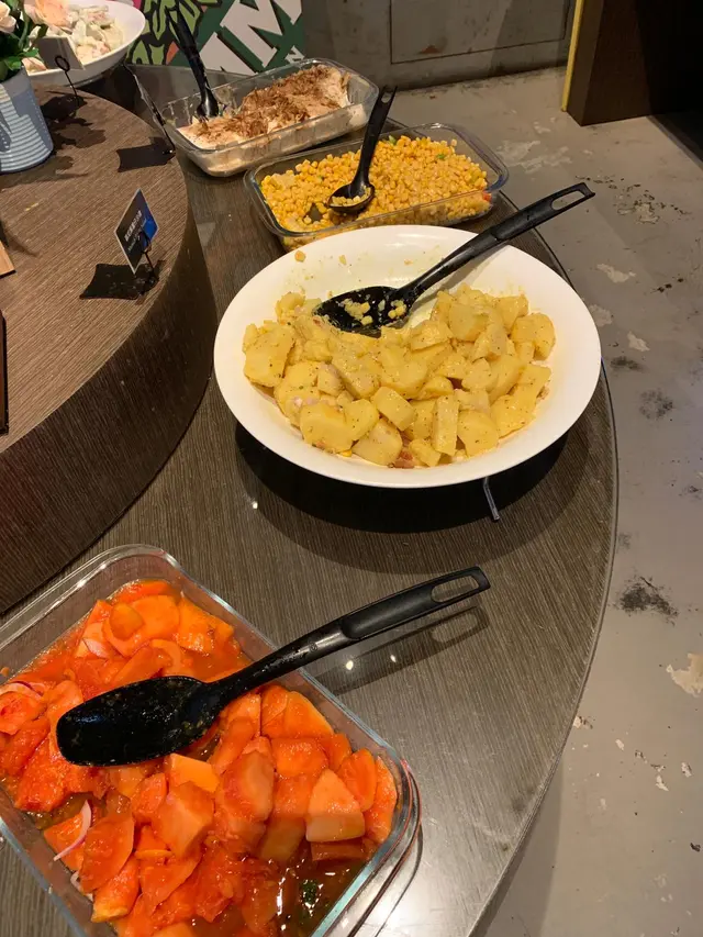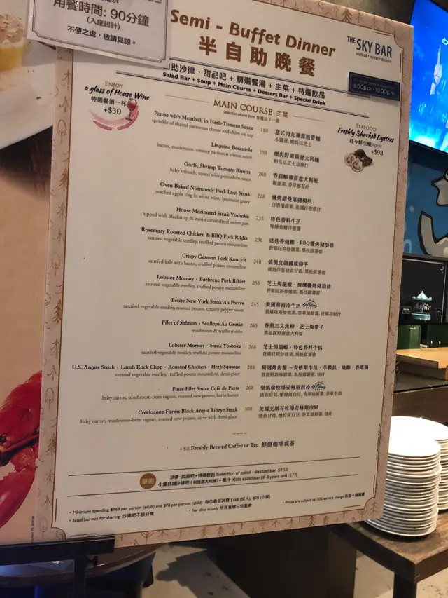 喺上面買完餸諗住落去食個好少少嘅午餐,點知極度中伏!..🚫🚫🚫肺炎期間千祈唔好去The sky bar 食飯,好易賴嘢!(或者你可以叫你極憎既仇人去🥶)🚫🚫🚫..❌首先,入坐明明有好多其他空位,但是應會將客人迫埋係一齊坐。(肺炎最忌人多).❌第二,枱面上有棵假植物,輕度美觀,但是極多塵,肯定長年冇人抹過!(肺炎呀,唔抹下就收起啦😫).❌第三, 唔洗杯就比下一位客人用!叫杯餐飲熱檸水,乜事?隻杯有唇膏印💄嘅?而家肺炎期間整啲咁嘅嘢益我?🥶..————————————————講返食物質素,自動更改餐牌既🤯.📍柚子醬油烤三文魚柳🐟,唔知點解上枱變咗凍肉舖最平嗰種白色龍利魚🐟?x! 🥴我師奶嚟,實知三文魚同龍利魚爭好遠喎🤯⋯.📍蘆筍蟹肉忌廉意大利飯🧆冇乜問題,好港式,好似食粥咁。唯一肯定係冇蟹肉。莫講蟹肉,假蟹柳都冇條。.📍煙三文魚田園沙律🥗唔知點解上桌無咗煙三文魚,變咗兩粒硬骨骨的石頭霉蝦⋯.📍自助餐部份(西瓜自助餐🍉)基本上冇嘢食的,我只係食到啲西瓜🍉,普通西瓜囉,唔差嘅。仲有未解凍嘅芝士蛋糕🍰,好似食緊芝士冰。見到仲有麵包布丁,不過好搞笑,冇嘢俾人舀既?可以睇,但食唔到🤷🏻♀️⋯—————————————————😡😡😡最後都要講返句:「x! 雖然平啫,但唔使咁嘛⋯」🥶話係半自助餐,但係自助餐部份長期空空如也,空蕩蕩,乜都冇。唔好講大話自己係半自助餐都好啲🙏🏻。🥱X! 早知食隔離間韓燒!😟…查看更多