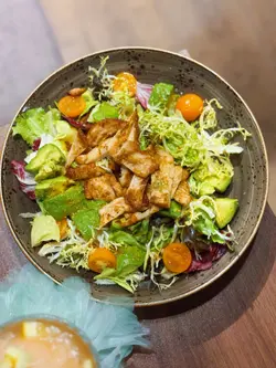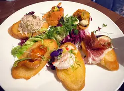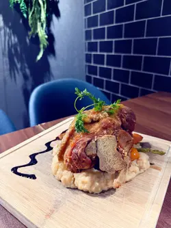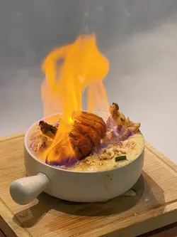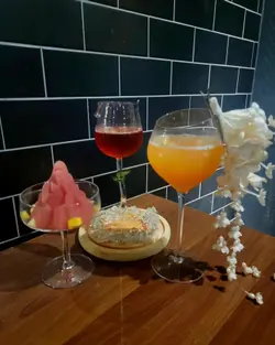 整間餐廳的氛圍都充滿浪漫和神秘感,煙霧效果非常特別,十分有驚喜!🌟火焰龍蝦尾芝士忌廉手捲意大利麵這個龍蝦尾🦞煮的時間恰到好處,完全沒有過熟的情況出現,所以肉質非常彈牙,加上忌廉汁及有拉絲效果的芝士,味道非常出色。而火焰效果亦令兩兄弟也非常雀躍。🌟柚子蜜糖烤德國咸豬手這個德國鹹豬手與以往傳統的有少少不同,味道會有柚子蜜糖的甜味,有新鮮感。🌟香草烤幼嫩羊架🐑羊架煎得外脆內軟,非常惹味。🌟烤大蝦飛魚籽松露忌廉意大利飯大蝦夠大隻彈牙,意大利飯煙煙韌韌,配上飛魚籽松露汁好好味。🌟520 花束沙律💐(伊比利亞黑毛豬風腿、布里白芝士、無花果)這個賣相非常吸睛,造型貌似一束真正的花束,實際上卻是沙律,令人賞心悅目。🌟西班牙花園佐酒盛典這佐酒小食以六種不同口味組合而成,包羅萬有,滿足不同口味食物的需要:1️⃣伊比利亞黑毛豬風腿、無花果2️⃣香蒜辣番茄腸3️⃣凱撤風尾蝦4️⃣明太子蟹肉沙律5️⃣Sauce 煙三文魚、6️⃣蜜糖芥末醬7️⃣橄欖油芝士番茄🌟比利時熱香餅芒果草莓塔熱香餅不是太甜又鬆軟,芒果及草莓也十分香甜,而且顏色鮮艷。🌟霧紗玫瑰以[美女與野獸]為靈感玫瑰花型杯cocktail,美麗又別緻加上噴上草莓香味的果味煙,充滿浪漫氛圍。🌟花桃低語兩種桃子味道結合的果味酒,高腳酒杯加上和服垂花裝飾超美。另外,餐廳設有桌球和擲標的設施,只要惠顧的適合便可以使用。…查看更多