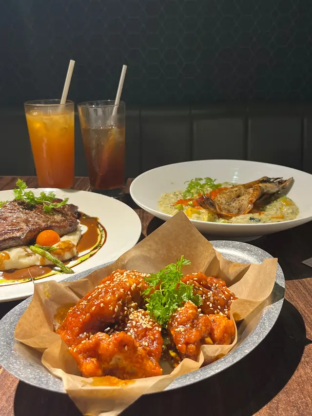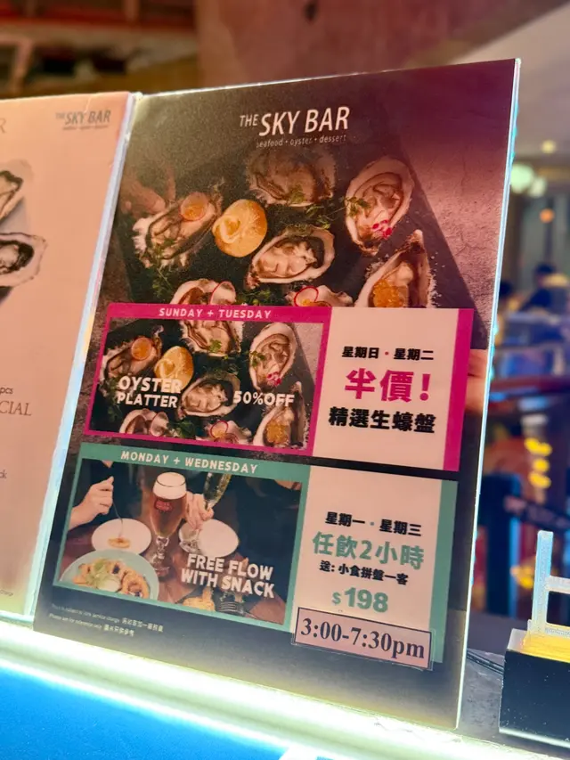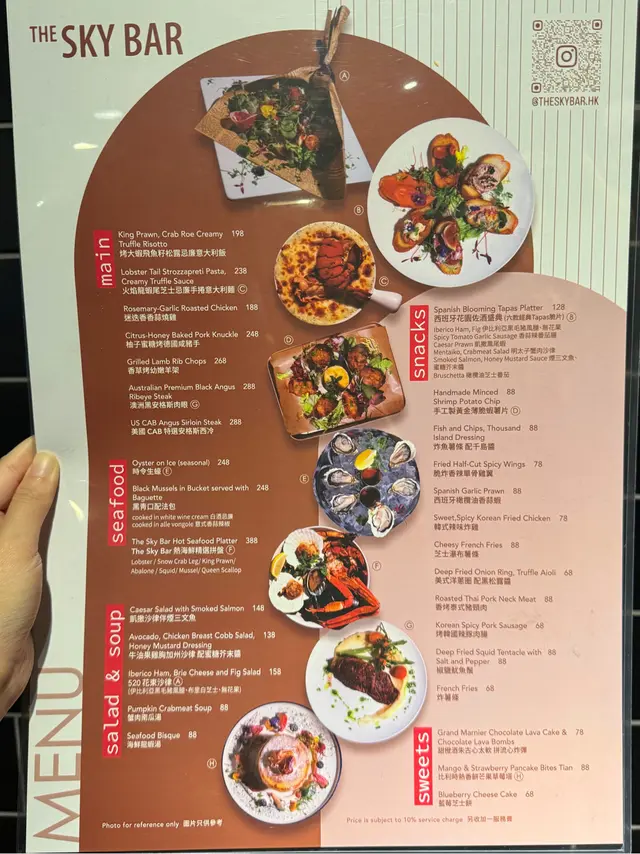 《The Sky Bar - 旺角》好耐無去朗豪坊頂層既The Sky Bar飲野啦,原來而家餐廳有新搞作,推出左雲上用餐既體驗🥰每晚七點半同八點半都會有用乾冰製作既雲海效果表現,就好似走左上雲上面食飯咁😉又得意又幾浪漫🌹打卡一流呀😍除左有得影相又有靚景外,野食其實又幾唔錯😌價錢都好合理💁🏻♀️蟹肉南瓜湯 $88一上枱已經聞到南瓜香😋南瓜湯濃郁得黎又creamy,蟹肉絲好足料,上面仲有忌廉同黑松露油打圈,冬天飲真係暖笠笠又滿足😌💁🏻♀️520 花束沙律 $158一上枱成束玫瑰花咁,睇落又靚又好打卡,用牛油紙包住左parma ham、煙三文魚、車厘茄、沙律菜、芝士等食材,淋上黑醋醬汁,開胃到停唔到口🌹兩個人share份量都超多💁🏻♀️香烤泰式豬頸肉 $88$88食到呢個豬頸肉真係無敵抵食🫶🏻口感爽口帶甜味,烤到外層微焦,肉汁鎖得好好,泰式甜辣醬酸甜開胃,仲有青檸自己擠,解膩一流💪🏻💁🏻♀️澳洲安格斯肉眼 $288食扒一定會揀medium rare👍🏻切開肉入面呈粉紅色juicy到爆,肉香濃郁而且外層焦香,底層係薯蓉同洋蔥汁,配菜有蘆筍同車厘茄,份量大到兩個人都食唔晒🥹💁🏻♀️甜橙酒朱古心太軟拼流心炸彈 $78超邪惡甜品組合😍左邊係熱辣辣心太軟,切開後朱古力漿流到滿碟都係,右邊係炸彈就好似流心麻薯咁,一切開一樣爆漿,食落又唔算太甜,仲有微微甜橙酒香,配雲尼拿忌廉十分合拍😭💁🏻♀️櫻雪山下 $128超靚粉紅刨冰山加上藍柑橘味既酒精,淨飲藍色果啲酒稍為有點濃,但溶左啲冰之後就會多左陣甜味,帶有少少果香,顏色由粉紅變夢幻紫藍,酸甜又清新,飲落好香又girly,影相100分📸…查看更多