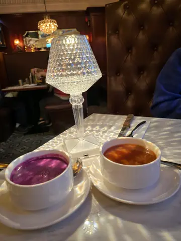 🔹️昨天到筲箕灣 “The Starred” 餐廳午餐🍽餐廳富有情調🎶 環境衛生🌿 食物高質😋 份量滿滿👍 各店員親切有禮、貼心極致👩🏻💼👨💼 怪不得除了堂食外, 外賣也深受歡迎🛍 價錢親民💰💫五道菜豐盛全餐(每套餐以一款主食 + 沙律杯 +餐湯 + 飲品 +甜品) 只需$80, 我們點了兩份😋🔸️沙律杯🥗以迷你意大利初榨橄欖油黑醋沙律杯, 沙律杯精緻, 十分鮮嫩, 加以橄欖油和黑醋汁更加開胃🍴💫餐湯🍵🔸️雜菜湯🥣以蕃茄、洋蔥、芹菜等食材, 味道香濃可口, 健康高纖🥄🔸️紫椰菜忌廉湯🫐以奪目粉紫色忌廉湯上陣, 其以紫椰菜炮製, 含豐富膳食纖維, 低脂肪、低熱量, 口感綿密👍🔸️琺瑯鍋飯 • 燒汁燴紐西蘭牛肉眼 • 温泉蛋 • 紅糙米飯🥘紐西蘭牛肉眼含濃郁的牛肉味、富彈性有嚼勁, 其油花平均和味道鮮甜,口感軟嫩多汁, 加上滑嘟嘟温泉蛋☺️營養紅糙米飯🍚 利用琺瑯鍋導熱均勻, 能讓米飯更充分受熱, 煮出來的飯更香更Q彈🥢🔸️鐵板豬梅扒 • 迷迭香蒜蓉汁 • 温泉蛋 • 意大利粉🥘🍝從遠處已聞到香噴噴, 豬梅扒肉質厚切, 軟嫩香滑兼充滿油香, 加上惹味蒜蓉汁, 令味道更昇華, 還有清爽秋葵、滑嘟嘟温泉蛋和爽彈意粉🤤🔸️西班牙巴斯克焦香芝士蛋糕🧀🍰以濃郁芝士鹹香味, 並帶有焦糖般的焦香, 甜度適中、口感輕巧軟綿、十分順滑😋🔸️即磨咖啡☕️咖啡味道香醇, 口感順滑😊🔸️菠蘿汁🍍🥃👍以100%新鮮菠蘿汁, 味道清新香甜👍🔸️凱撒沙律🥗另加點了凱撒沙律🥗 以香脆麵包粒、香甜葡萄乾、鮮嫩爽脆羅馬生菜、鹹香芝士和鮮甜車厘茄🍴…查看更多