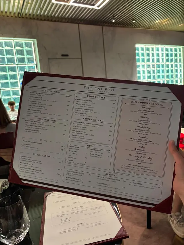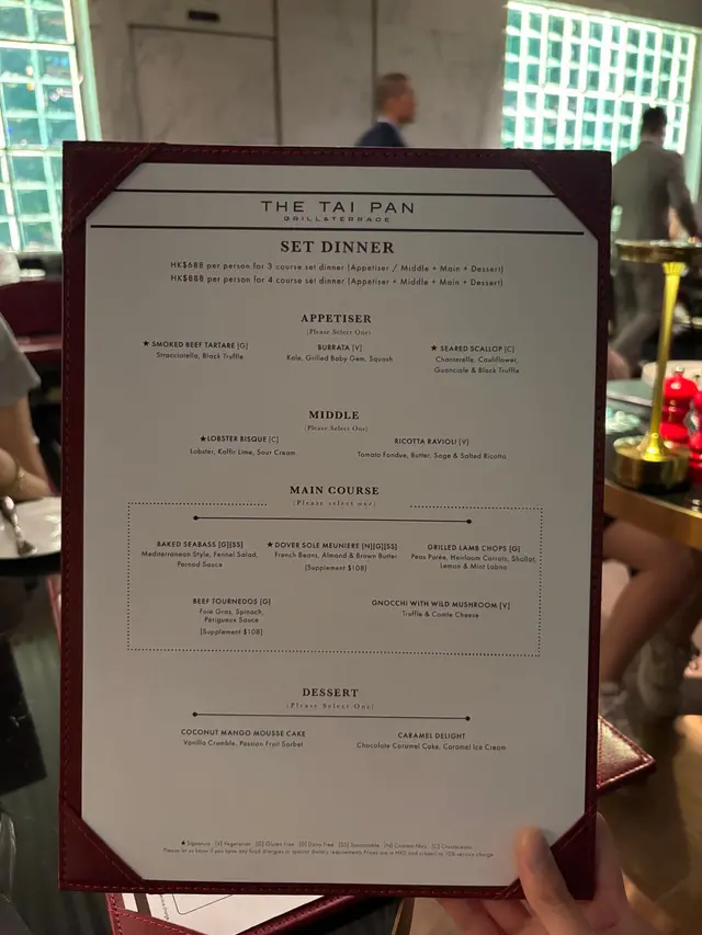 This modern bistro is located inside The Murray, on Cotton Tree Drive in Admiralty. Seated at a table on the window side looking out to the terrace, the space is comfortable, neat and chic.Tai Pan Salad ($298) is an upgraded Caesar, with some Canadian lobster meat added to the salad with lettuce, endive, apple, dill, avocado, scattered with Parmesan cheese. Taste is not bad, but I wonder why the lobster shell was kept and placed inside the salad, as the meat has already been taken out.The Tai Pan Signature Mussels ($388) is served in a large pot, with the mussels stewed with white wine, onion, and herbs. The mussels are fresh and rich in flavours, of a decent size as well. On the side there are some deep-fried fries which are also very good. It is my favourite dish in the evening.For the main course, my wife has Flamed Grilled Canadian Lobster ($538), with the lobster meaty and good in taste, having a bit of smokiness from the open fire, and able to keep moist and not dried from grilling. On the side are heirloom tomato salad, seasoned with oregano and ricotta, to help balance and give freshness.I had Sizzling New York Striploin ($548), with the steak cooked to medium level. Nicely seared, though the meat had already been cut and the jus had seeped out, affecting the enjoyment. On the side are roasted padron peppers, with some of the peppers quite spicy, paired with romesco and almond.To have a lighter dessert, we decided to order a Strawberry Ice Cream, as well as double scoop of Lime and Raspberry Sorbet ($40 per scoop). Served with some frozen berries, the dessert is refreshing, though the sweetness of the white chocolate pieces made the sorbet too sour in taste.Considering this is a restaurant inside a high-end hotel, the service is a bit disappointing, with one of the staff apparently lacking enthusiasm in serving us. There is a 10% discount from OpenRice, and the bill on the night is $2,532, which includes two glasses of wine and coffee. Not the best deal in terms of food quality or service. It is the software that matters.…查看更多