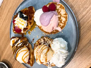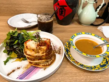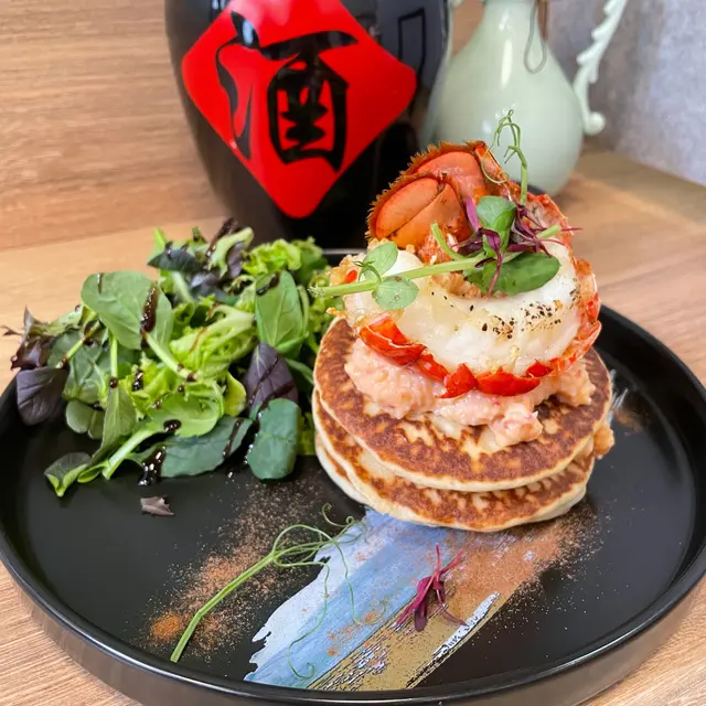 經過見到呢間好似唔係以前嗰間嚟,即管入去試下先。環境幽靜,成間舖得我一個人,好適合嚟做嘢。睇佢個menu同裝修都係中西合璧咁,菜式係幾得意,搞到樣樣都想試下。最尾叫咗個龍蝦pancake。首先有個中式蝦米湯之類,淡咗啲,尚可。然後個龍蝦似係有另外煎過,蝦殼好香,肉就冇乜啦一兩啖食完,始終唔係咩高級龍蝦。每層pancake 之間都夾咗啲龍蝦沙律,個沙律好好食,因為有蝦肉同蟹子所以口感好好👍🏻👍🏻配落啲甜嘅pancake 度又唔會奇怪,反而幾特別。同埋都飽嘅,對女仔嚟講。…查看更多