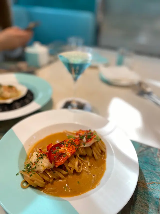 The Tiffany BlueBox Cafe😍🩵誰能抗拒呢~每個女孩都應該來打個卡吧~✨✨💖藍白色搭配整個環境就很夢幻,食物精緻味道有驚喜擺盤也非常講究,最愛龍蝦🦞伊麵🍜口感豐富,龍蝦啖啖肉十分有咬口,麵亦都煮到啱啱好,唔會太煙靭得黎又索曬D龍蝦香味,每口都好幸福☺️生日仲可以免費寫字👍🏻藍色小盒子蛋糕太可愛了🩵值得留念🥰✅…查看更多
