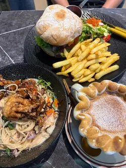 平時都會去吓紗廠,雖然自己冇養小動物,但見到咁多狗狗優哉游哉咁喺商場閑逛會好治癒。平日通常去兩、三間愛店,今日試新店,原來都出色有驚喜。1. 黑松露餐湯🥣首先係黑松露餐湯好香,稍稍攪拌下,已經聞到黑松露嘅香味。入口有少少蘑菇粒,勁好飲。店員話餐湯會不時轉款,好想試埋佢哋其他湯。😆2. 草莓咖啡🍓估唔到咖啡同士多啤梨奶都幾夾,而且唔算甜,幾清新舒服。3. 焙茶Latte焙茶超濃郁,勁好飲!焙茶粉成本高,通常啲舖頭冇落重手,所以自己只會飲返Cappuccino。估唔到呢間焙茶latte咁正,我會為咗佢再嚟。😎4. 軟殼蟹明太子汁忌廉天使面🍝軟殼蟹酥脆,而且份量幾多,有驚喜。😎天使面軟硬適中,配埋忌廉汁滑溜爽口。5. 蕃茄冬陰公海鮮燴意大利飯呢款大推!首先係冬陰功忌廉汁底較少餐廳提供,有新鮮感。其次係蕃茄中和咗少少辣味,但又有香茅嘅清香,幾唔錯。第三係mix risotto,啲飯索晒啲汁,正!最後係海鮮都多,有青口、蜆、明太子、魷魚粒,平日lunch唔使$100,性價比高。😊#南豐紗廠 #南豐紗廠美食推介 #南豐紗廠西餐#uniek #荃灣美食 #荃灣美食推介 #荃灣 #寵物友善餐廳…Read More