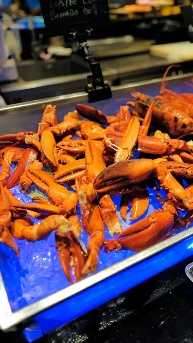 龍蝦,龍蝦鉗,阿拉斯加蟹,鱈場蟹腳,蜆,青口,扇貝,柚子鮑魚